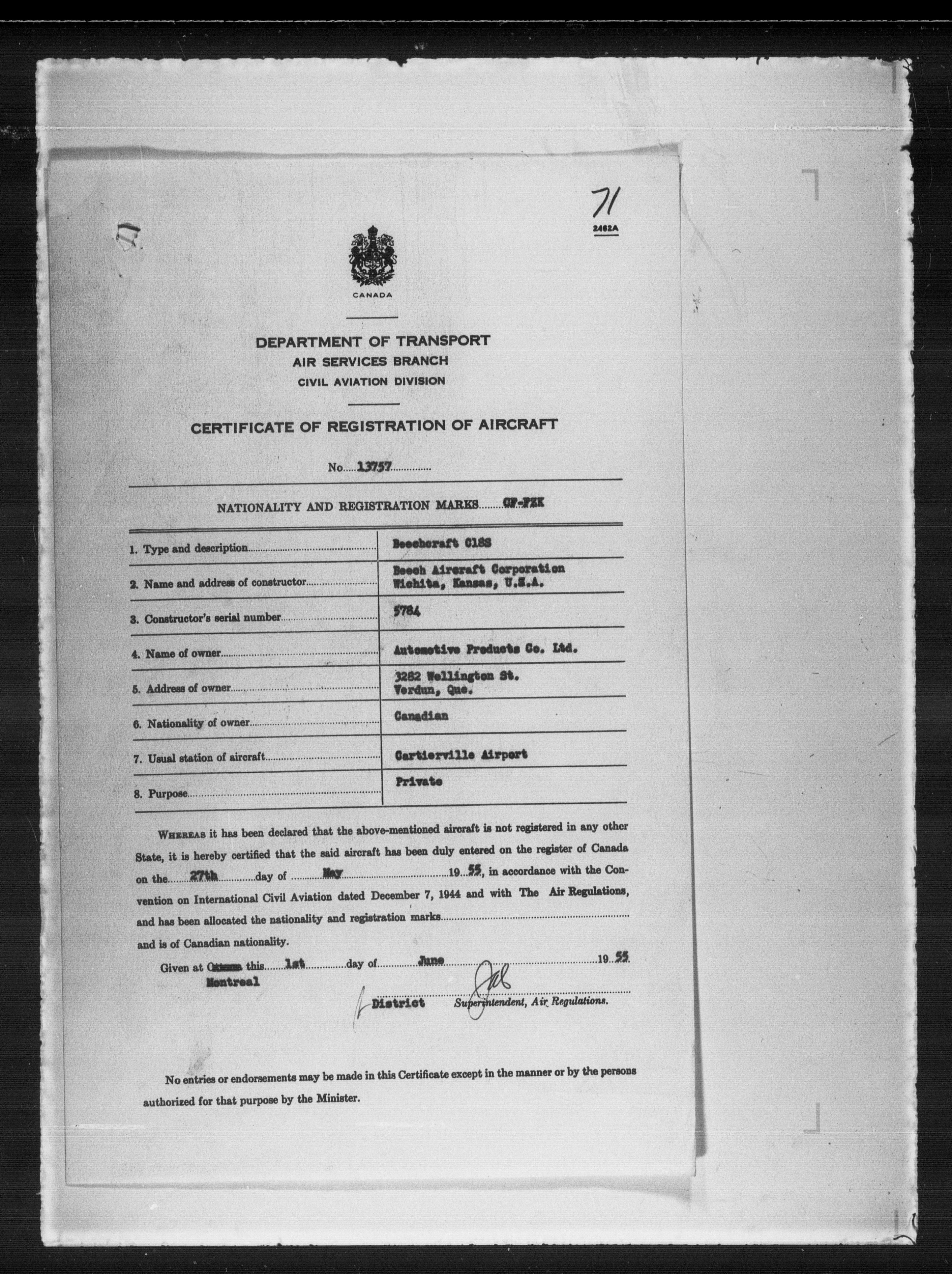 Department of Transport : Civil aircraft registration, inspection and operation files, block 5008, 1920-1986 - 7950