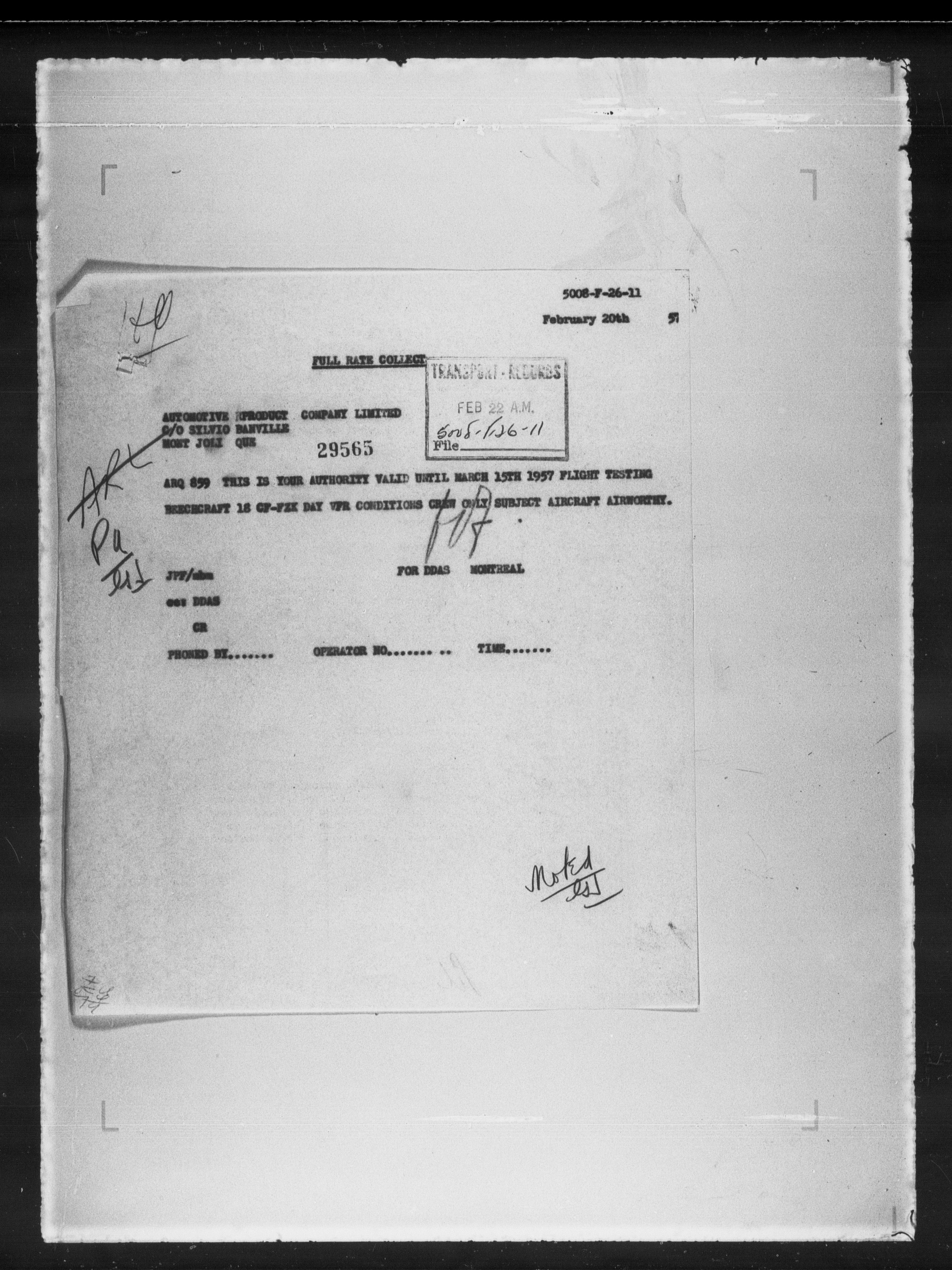 Department of Transport : Civil aircraft registration, inspection and operation files, block 5008, 1920-1986 - 7950