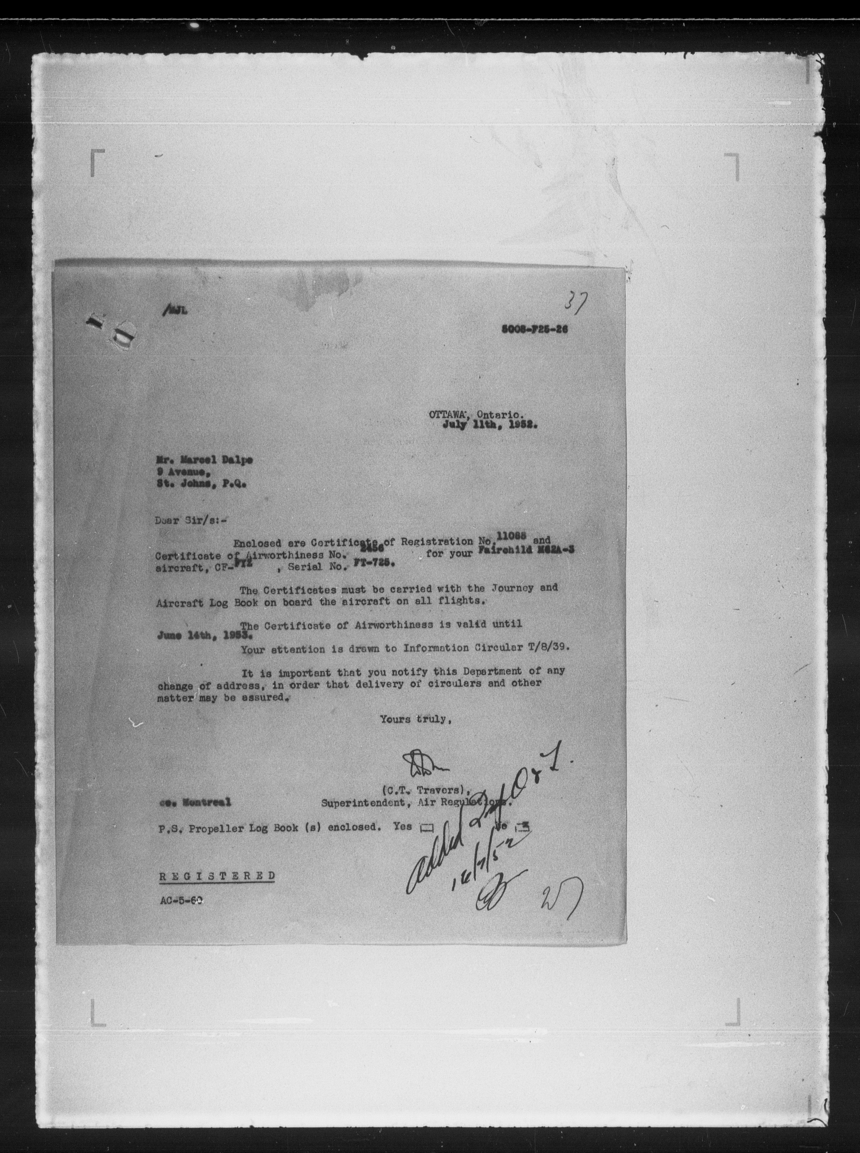 Department of Transport : Civil aircraft registration, inspection and operation files, block 5008, 1920-1986 - 7950