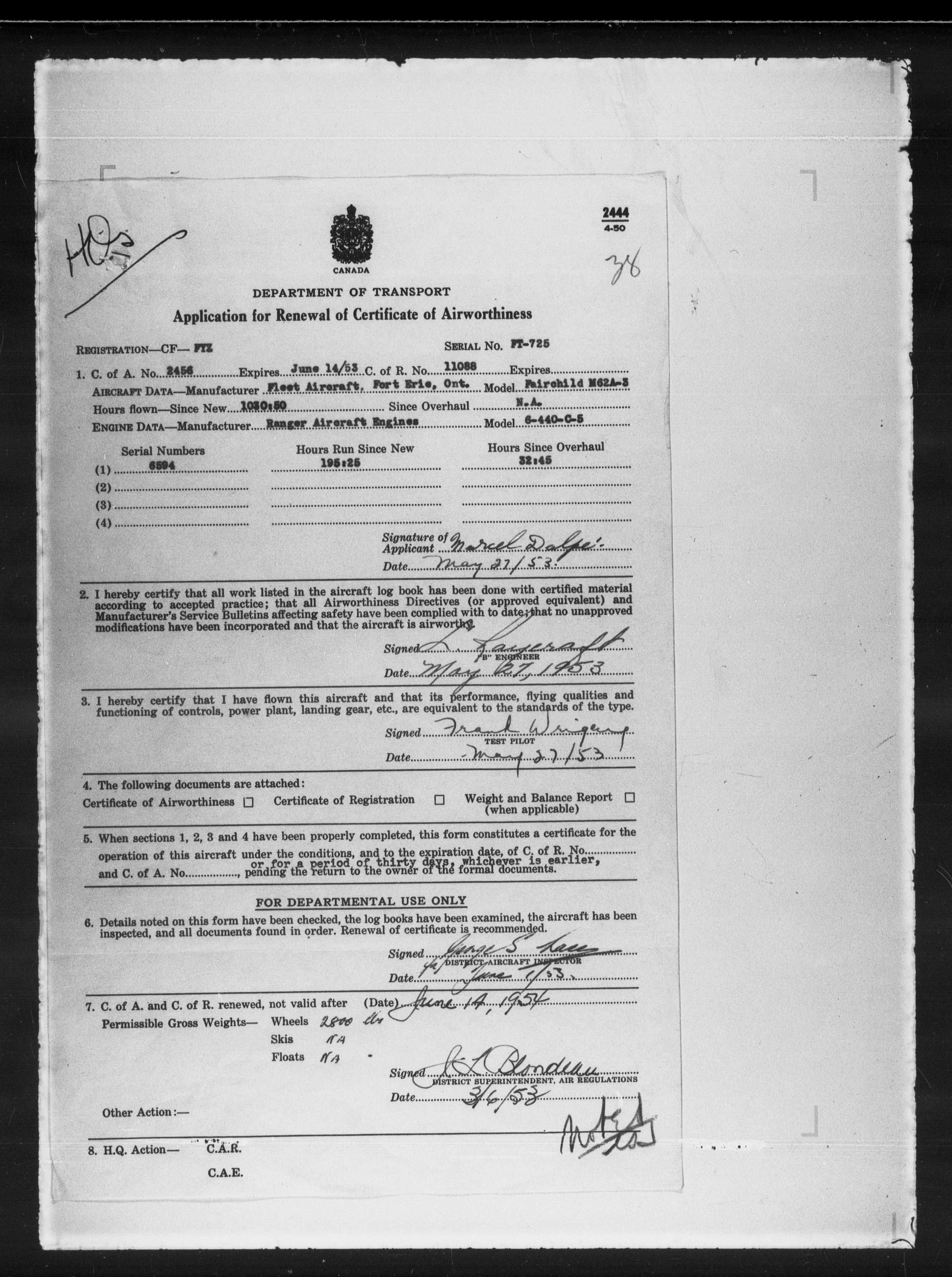 Department of Transport : Civil aircraft registration, inspection and operation files, block 5008, 1920-1986 - 7950