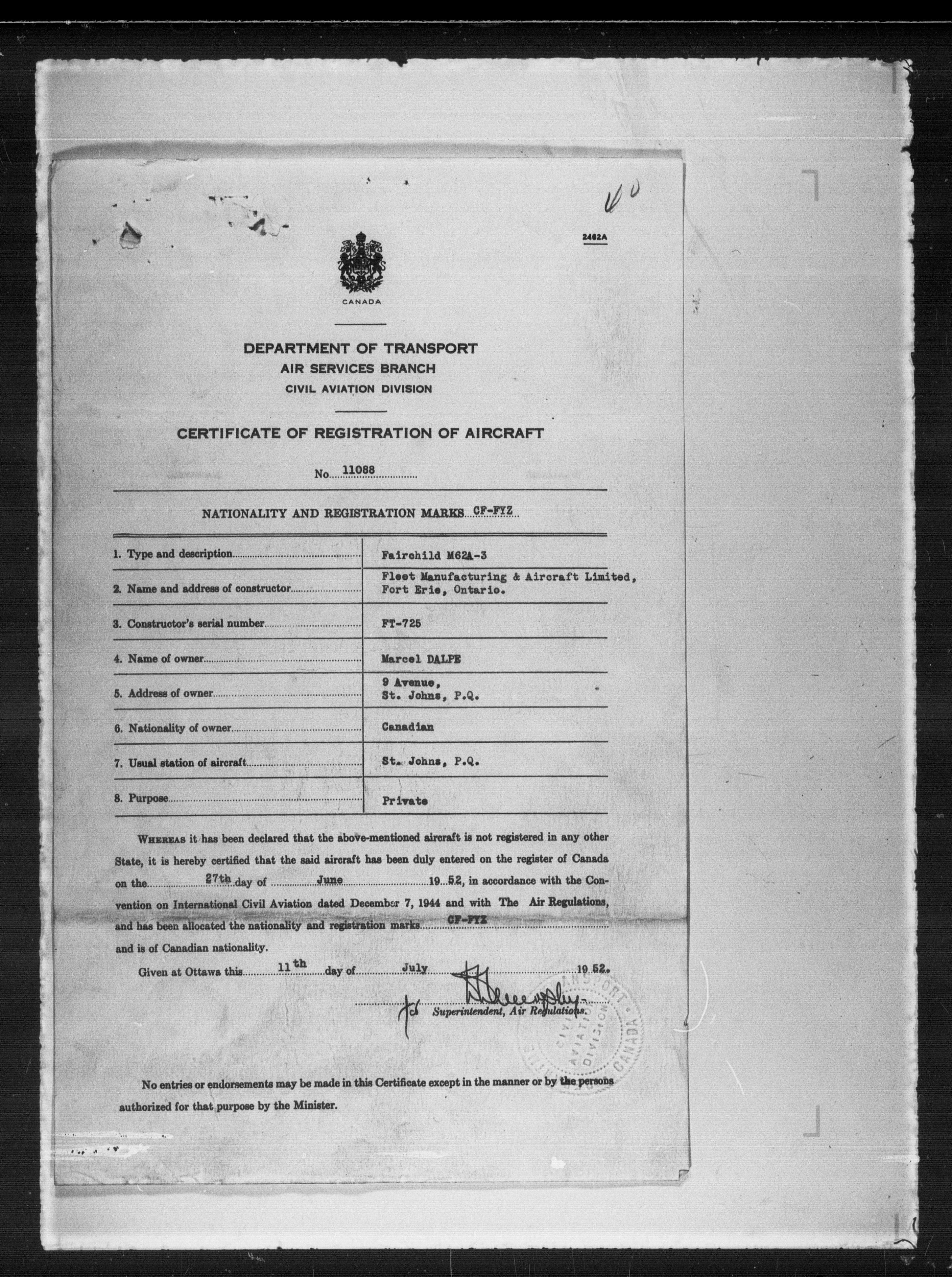 Department of Transport : Civil aircraft registration, inspection and operation files, block 5008, 1920-1986 - 7950