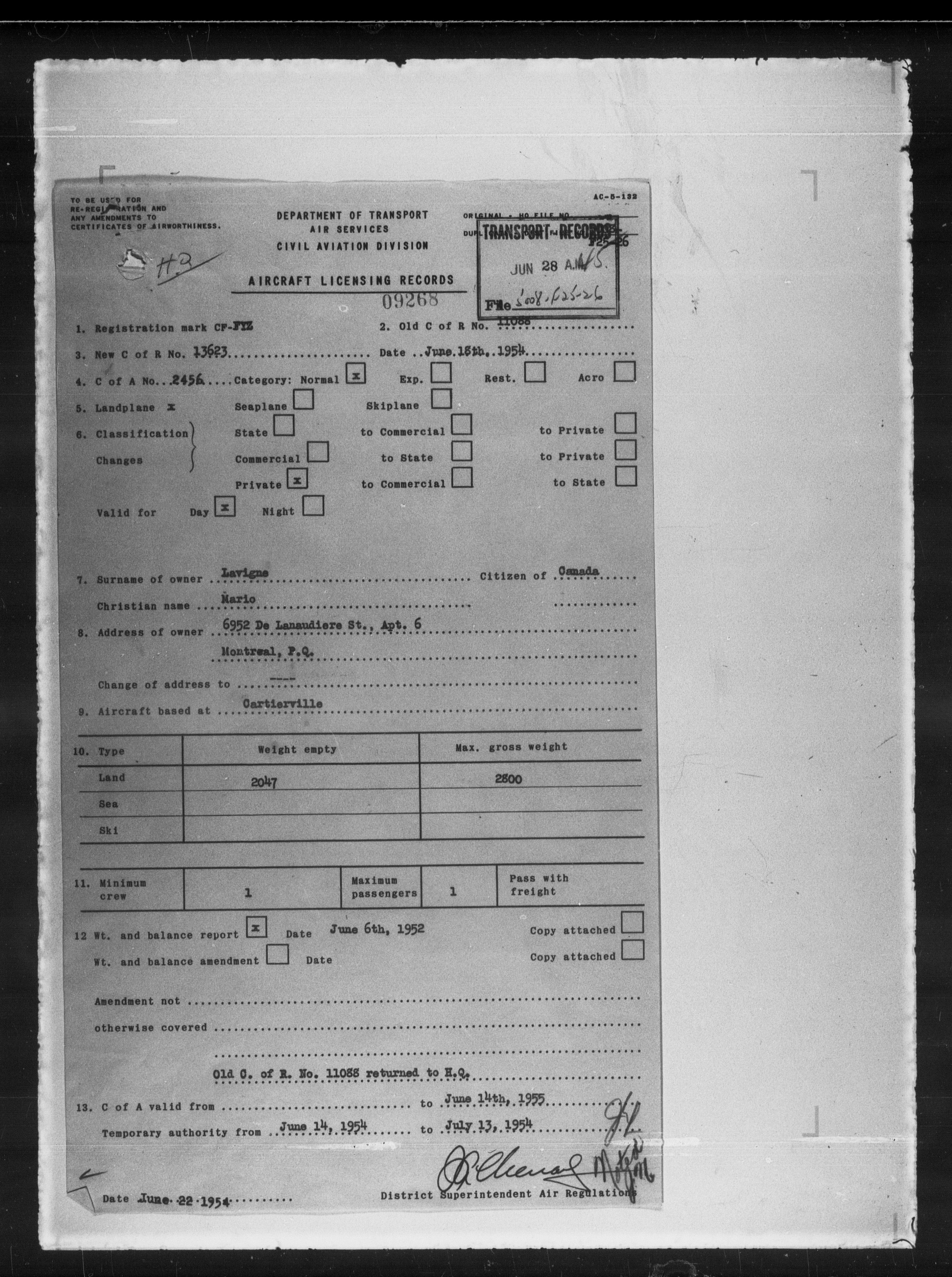 Department of Transport : Civil aircraft registration, inspection and operation files, block 5008, 1920-1986 - 7950