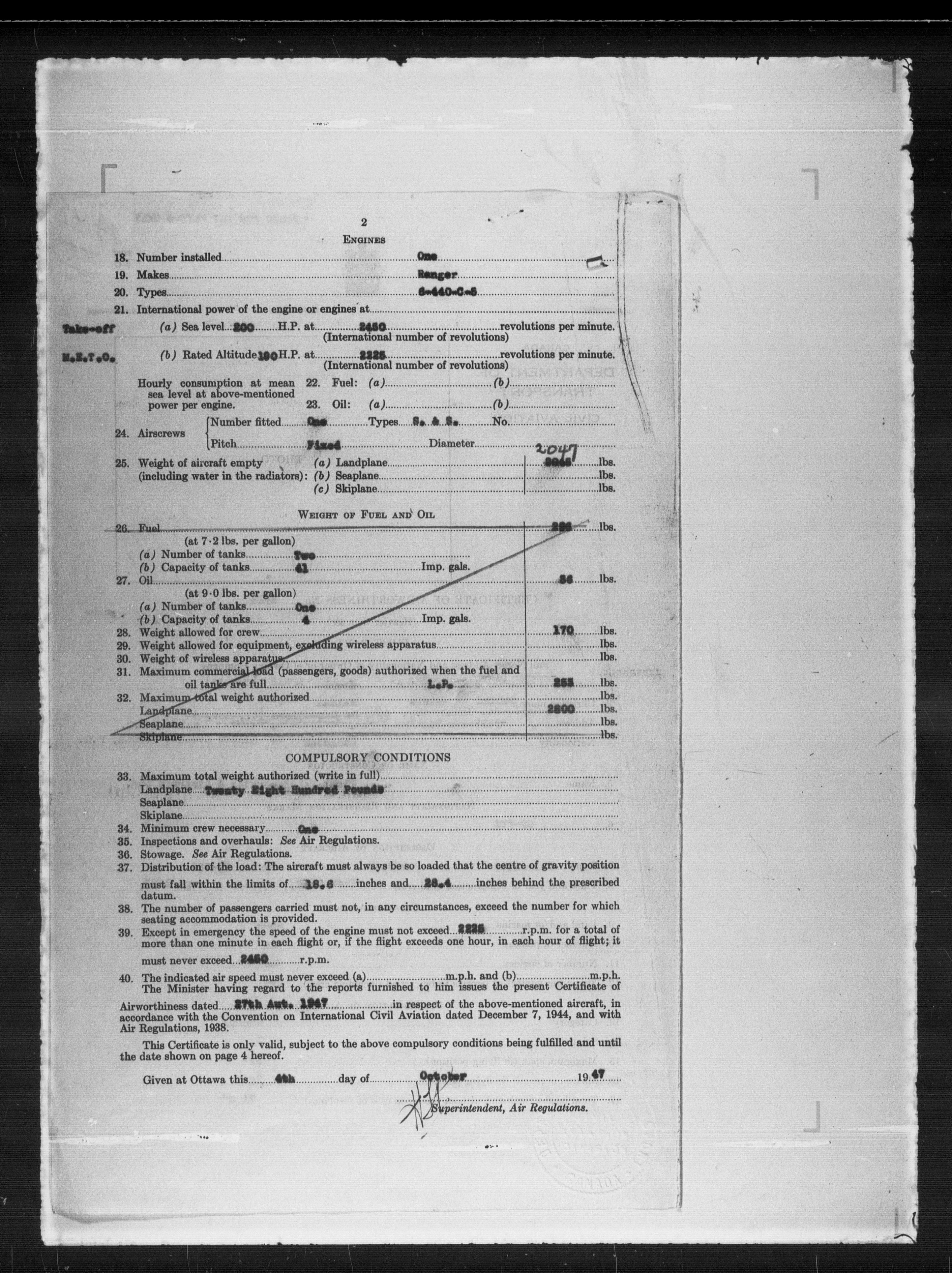 Department of Transport : Civil aircraft registration, inspection and operation files, block 5008, 1920-1986 - 7950
