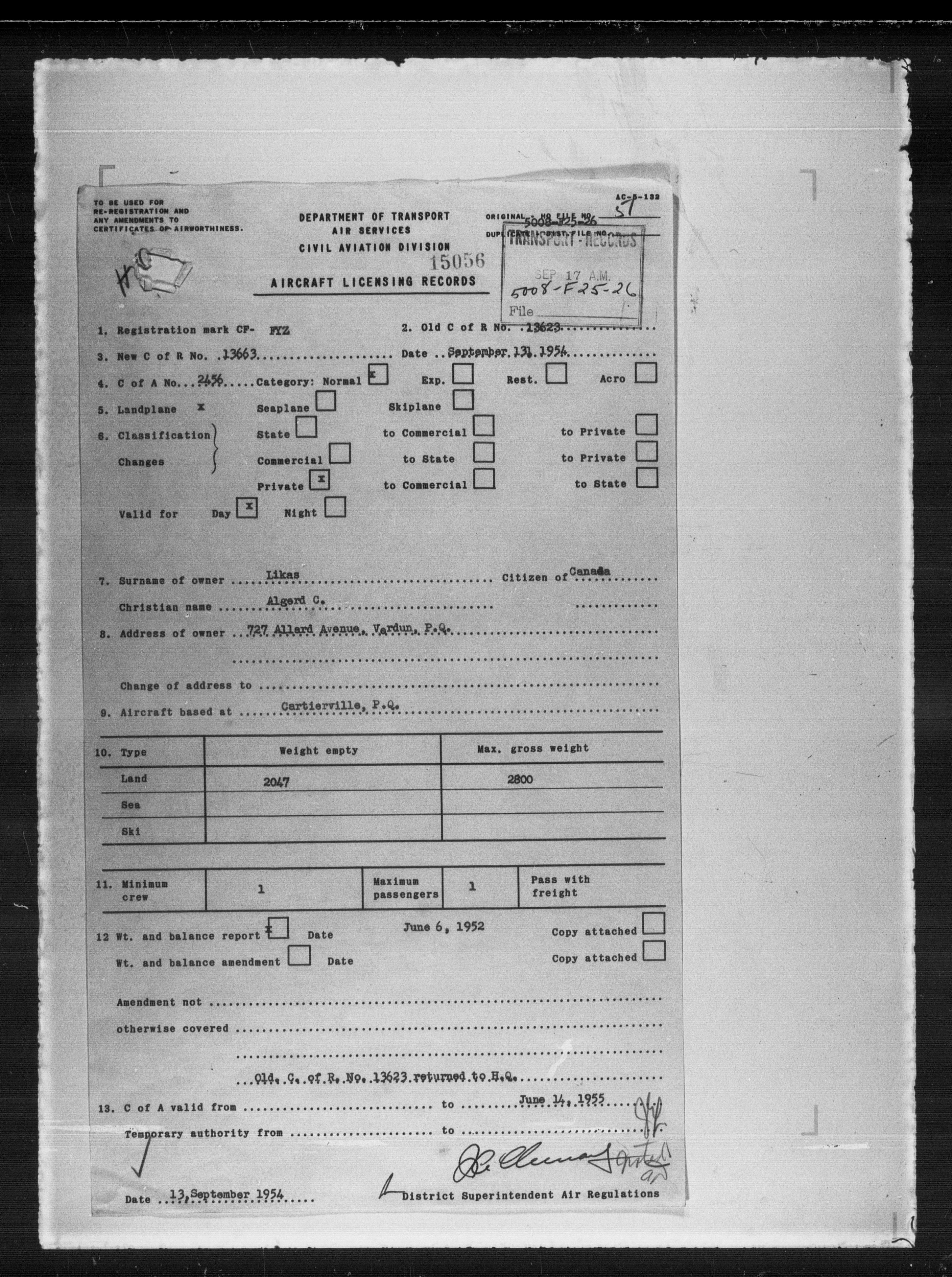 Department of Transport : Civil aircraft registration, inspection and operation files, block 5008, 1920-1986 - 7950