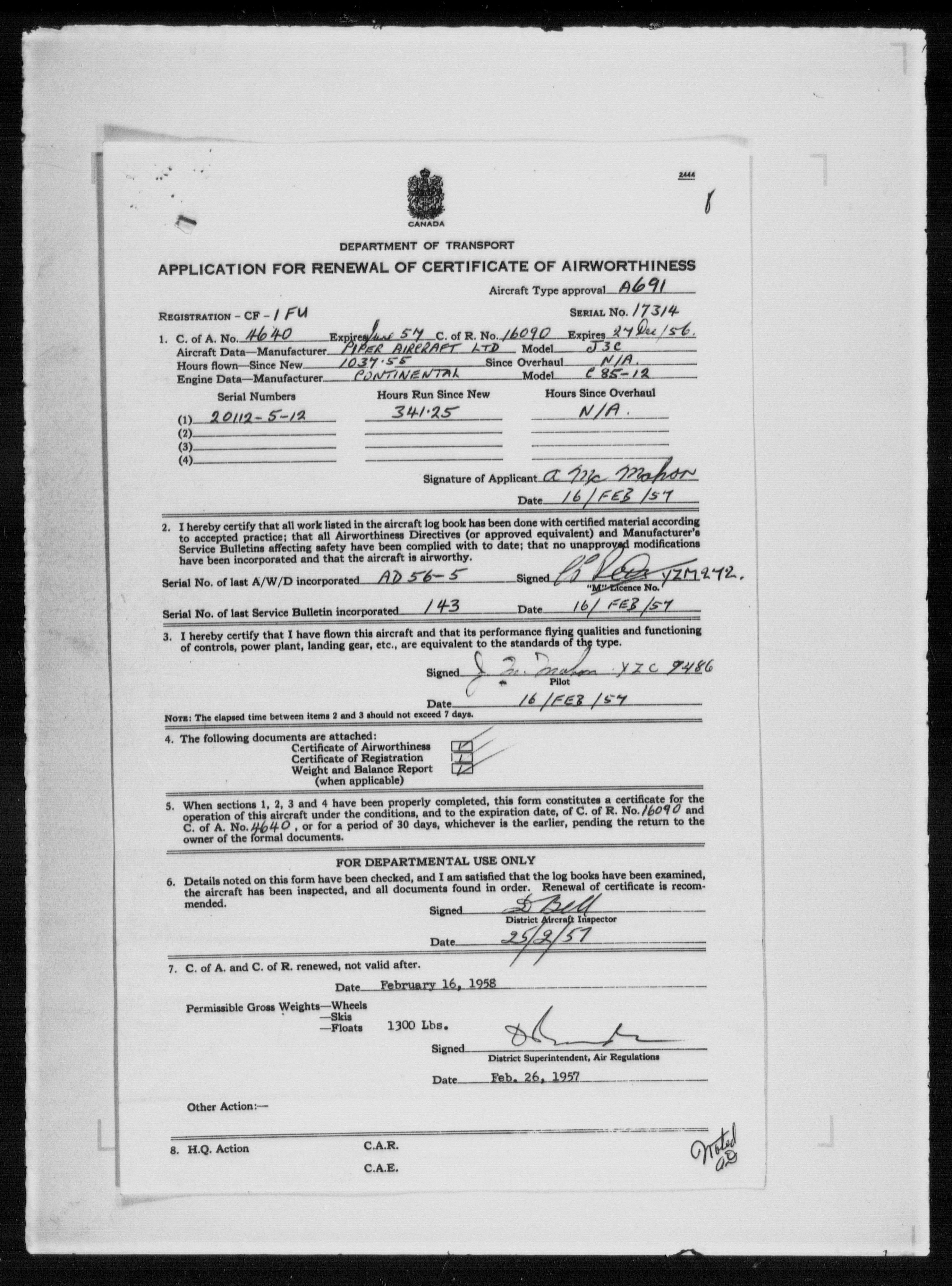 Department of Transport : Civil aircraft registration, inspection and operation files, block 5008, 1920-1986 - 7960