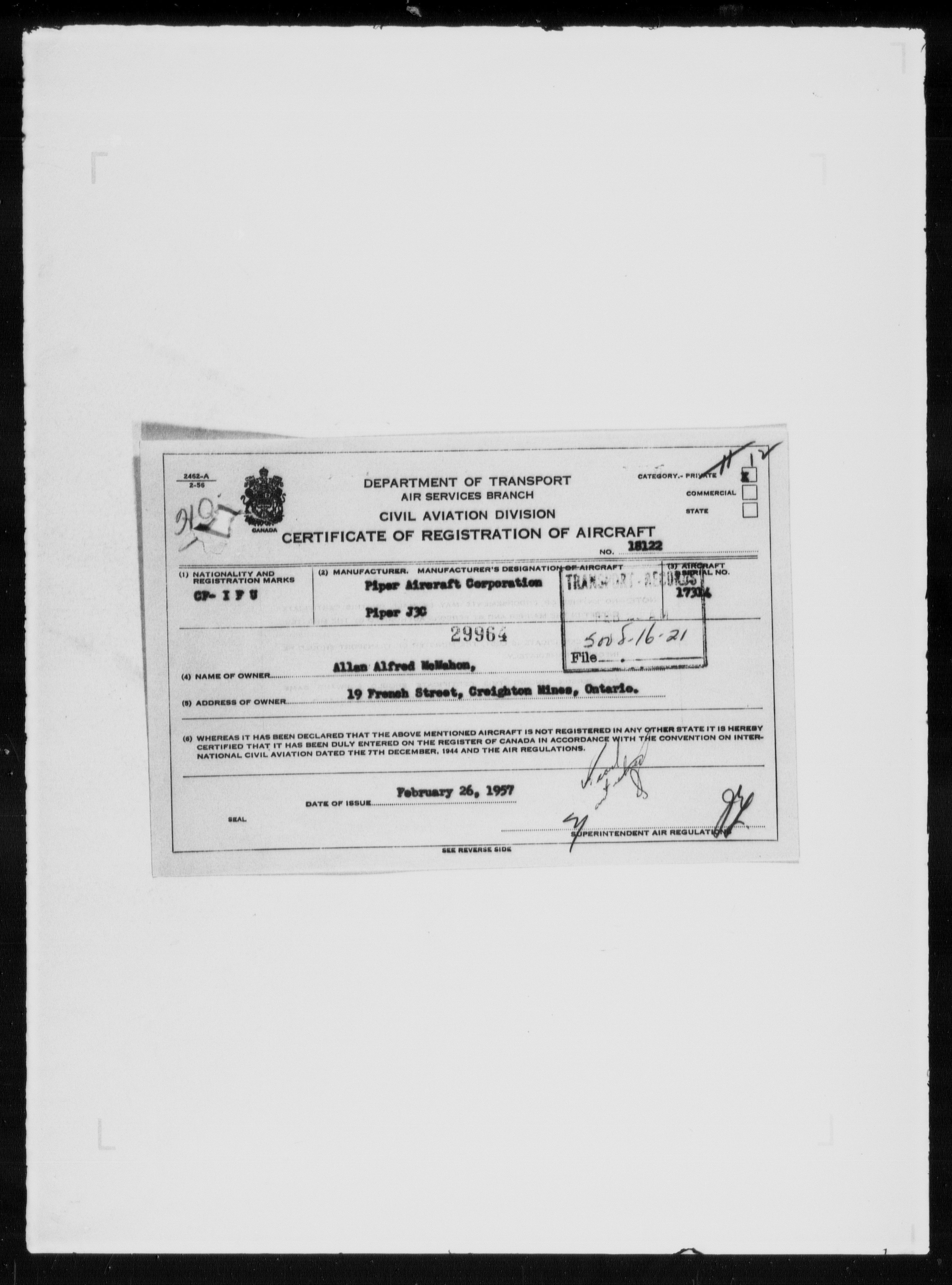 Department of Transport : Civil aircraft registration, inspection and operation files, block 5008, 1920-1986 - 7960