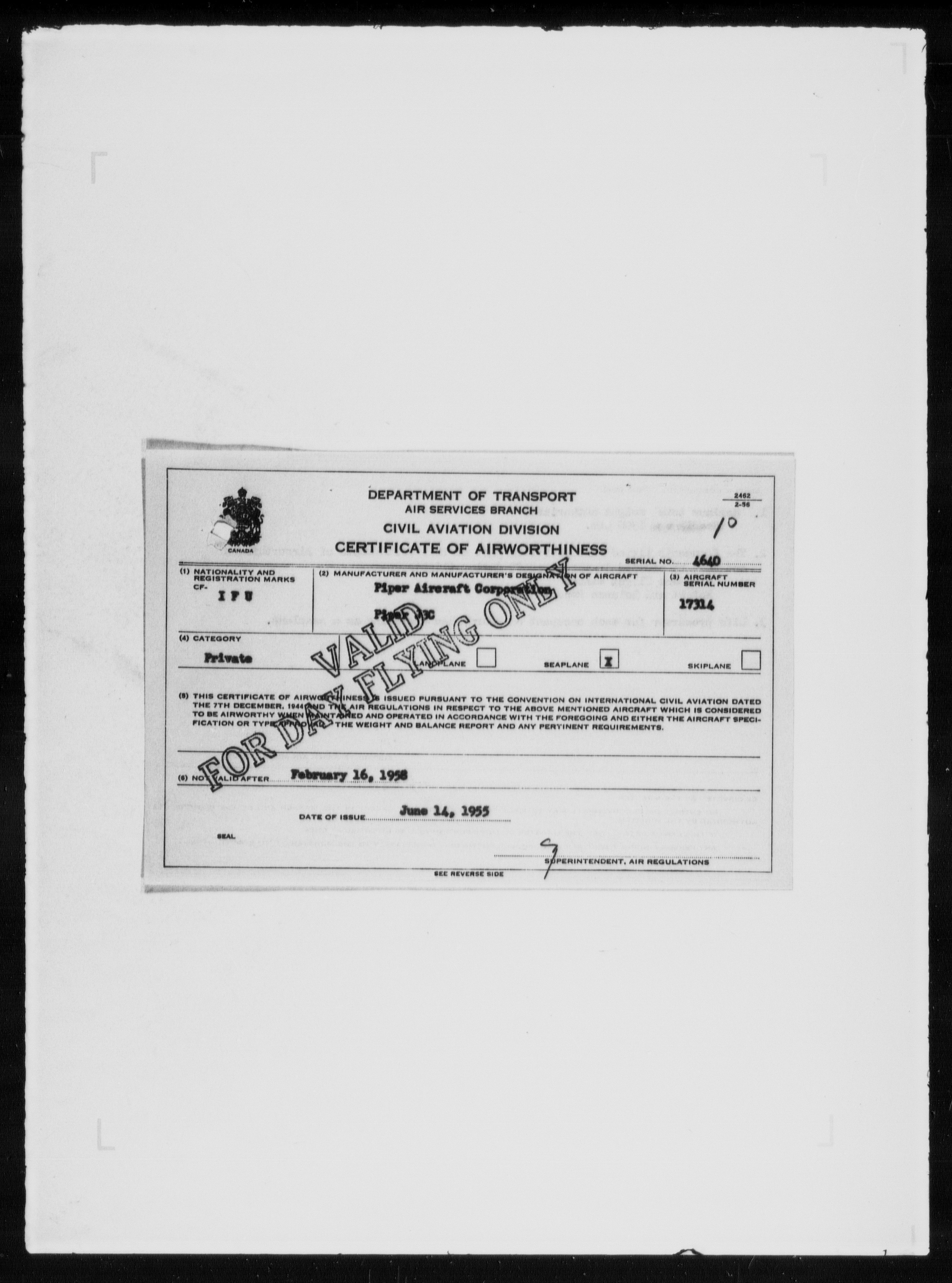 Department of Transport : Civil aircraft registration, inspection and operation files, block 5008, 1920-1986 - 7960