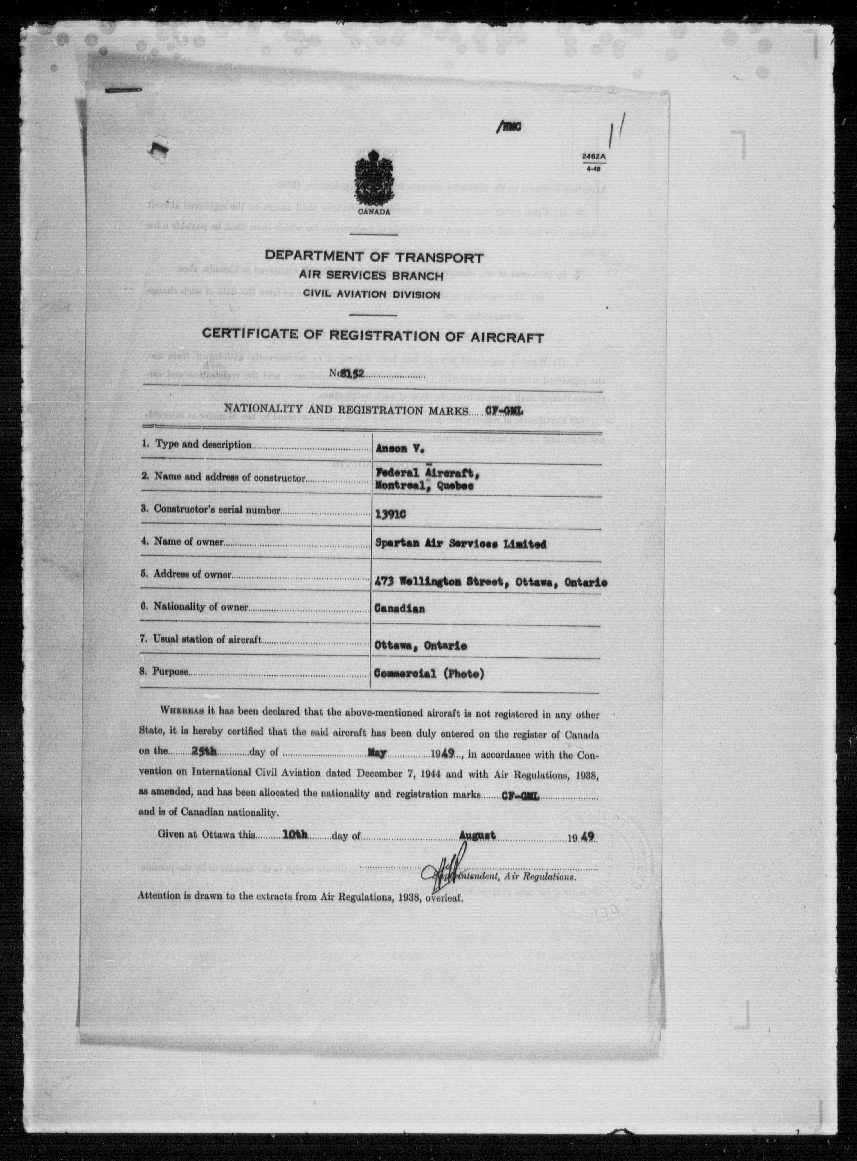 Department of Transport : Civil aircraft registration, inspection and operation files, block 5008, 1920-1986 - 7960