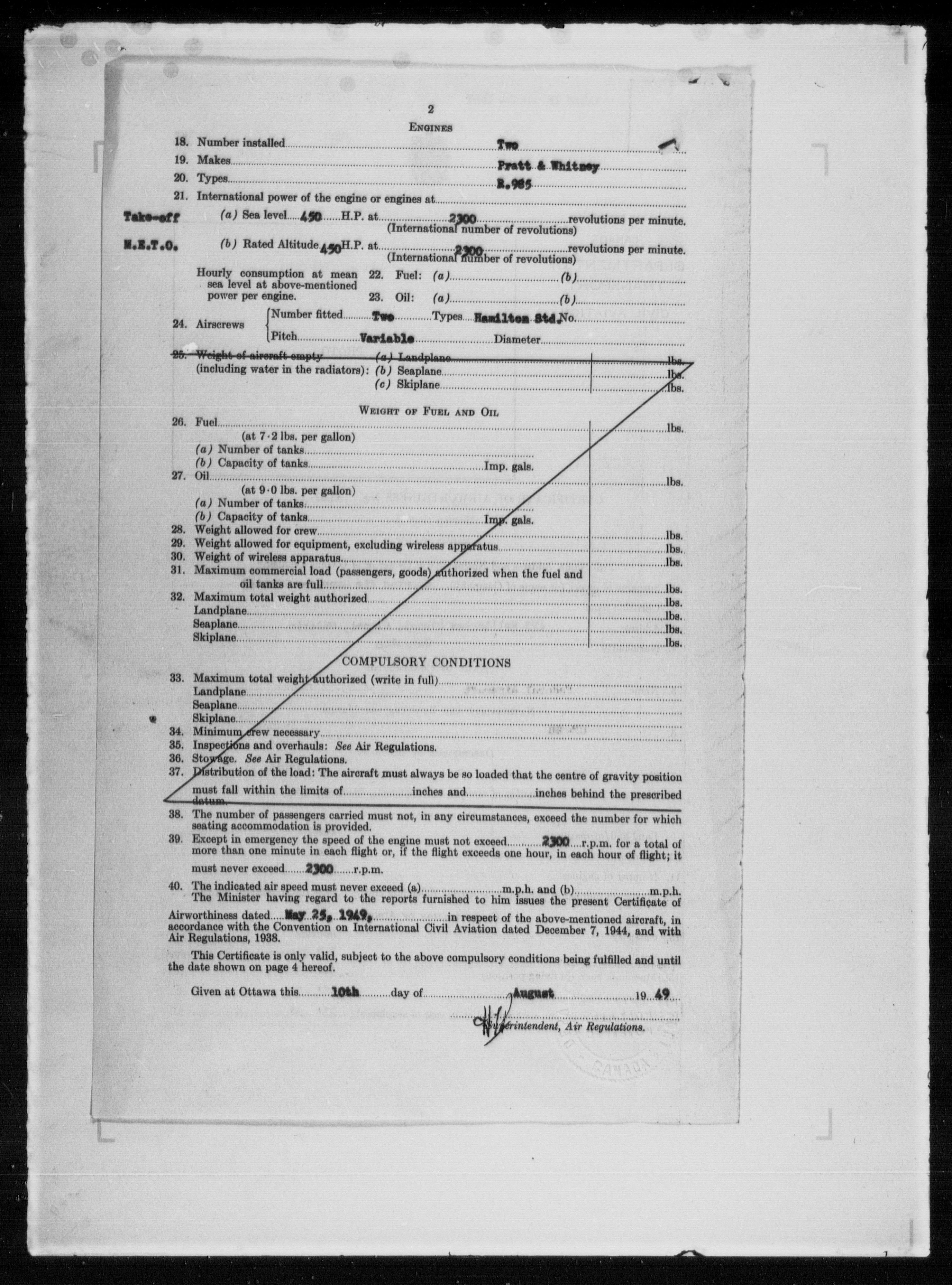 Department of Transport : Civil aircraft registration, inspection and operation files, block 5008, 1920-1986 - 7960