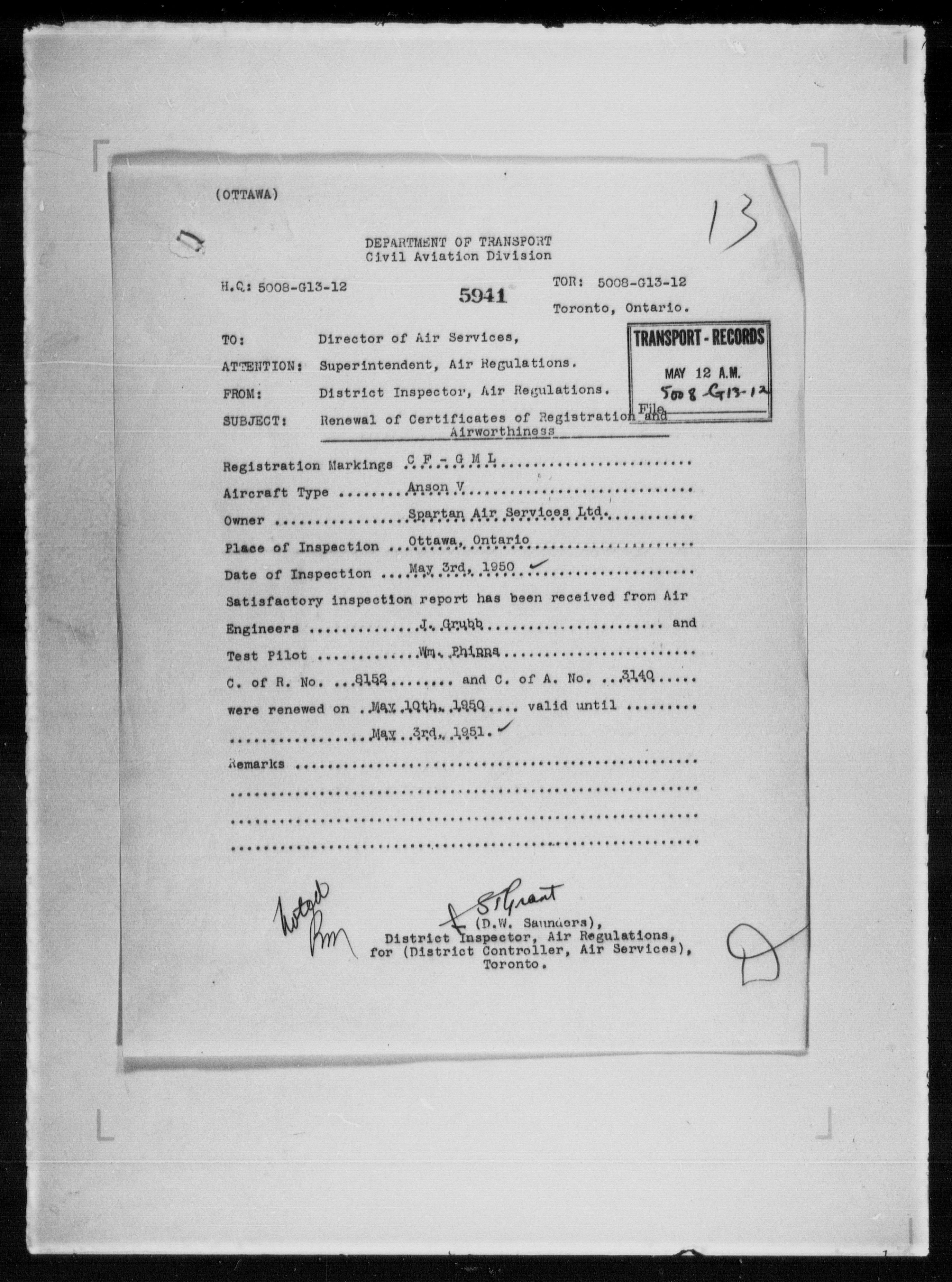 Department of Transport : Civil aircraft registration, inspection and operation files, block 5008, 1920-1986 - 7960