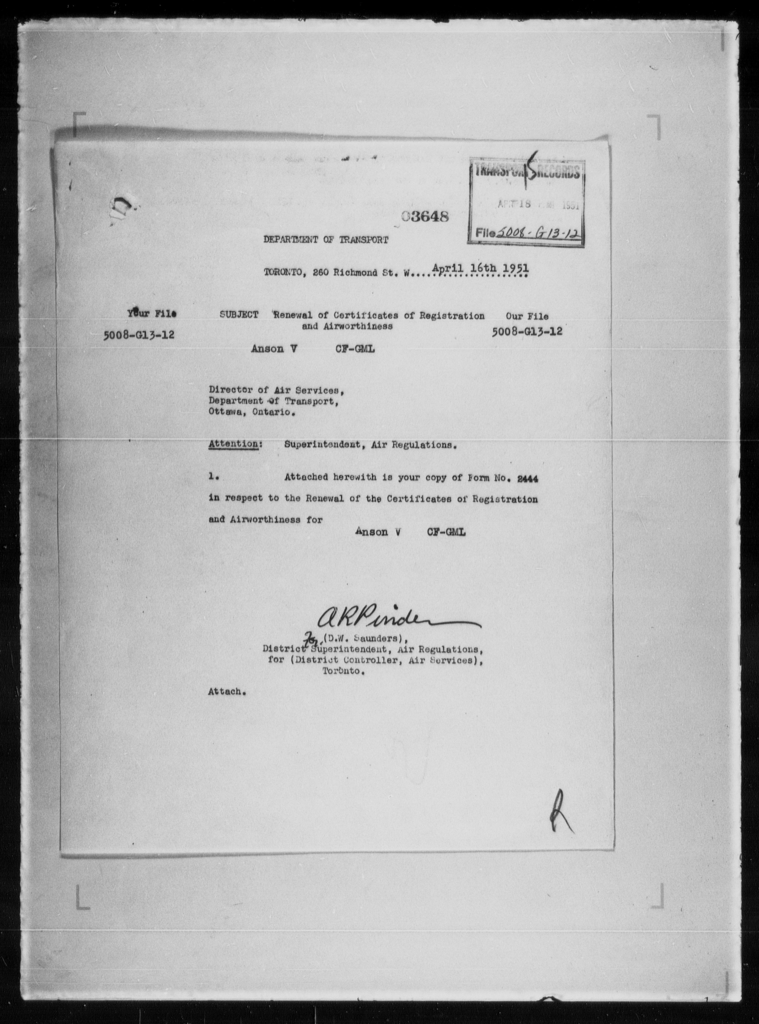 Department of Transport : Civil aircraft registration, inspection and operation files, block 5008, 1920-1986 - 7960