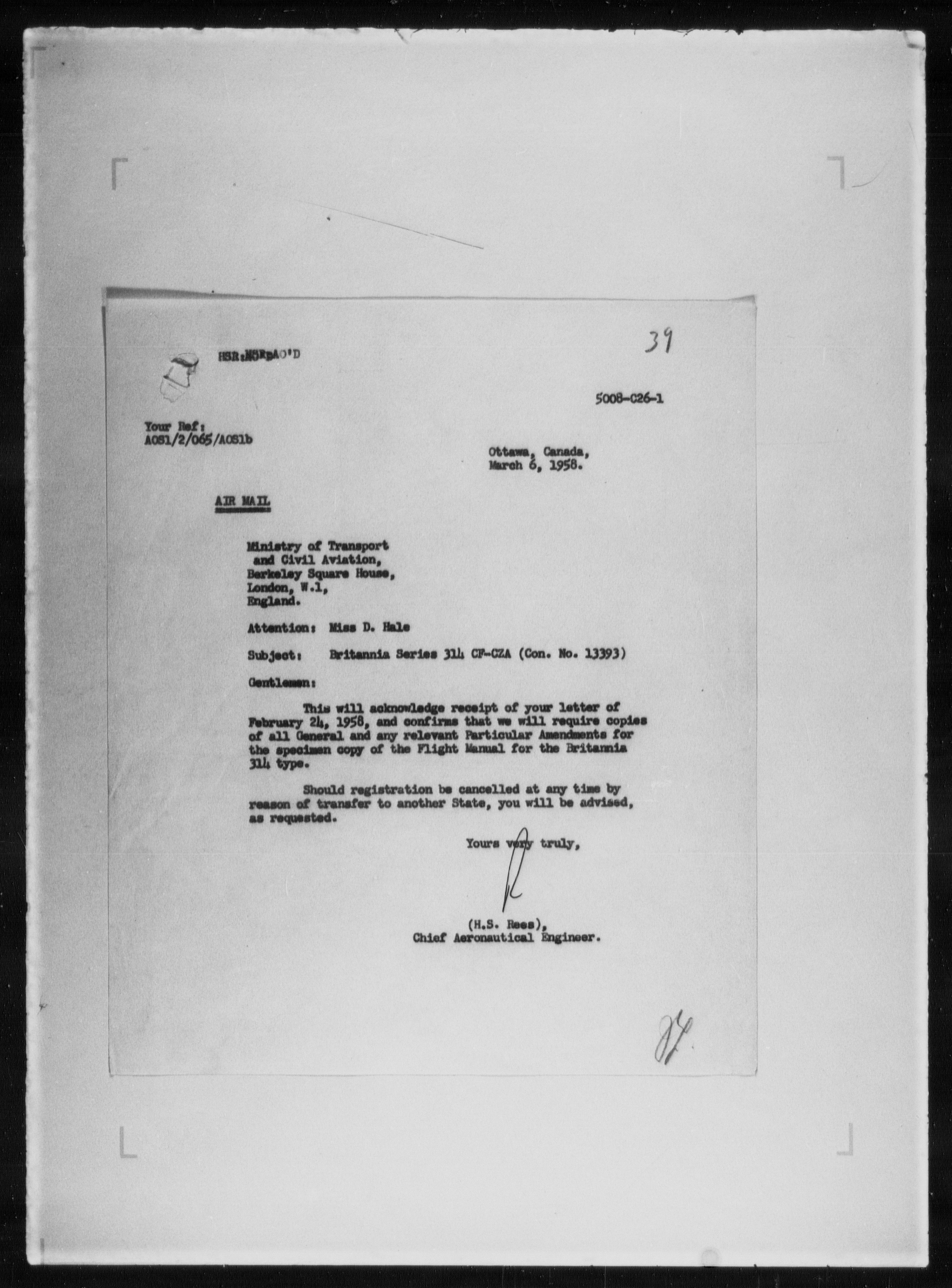 Department of Transport : Civil aircraft registration, inspection and operation files, block 5008, 1920-1986 - 7963