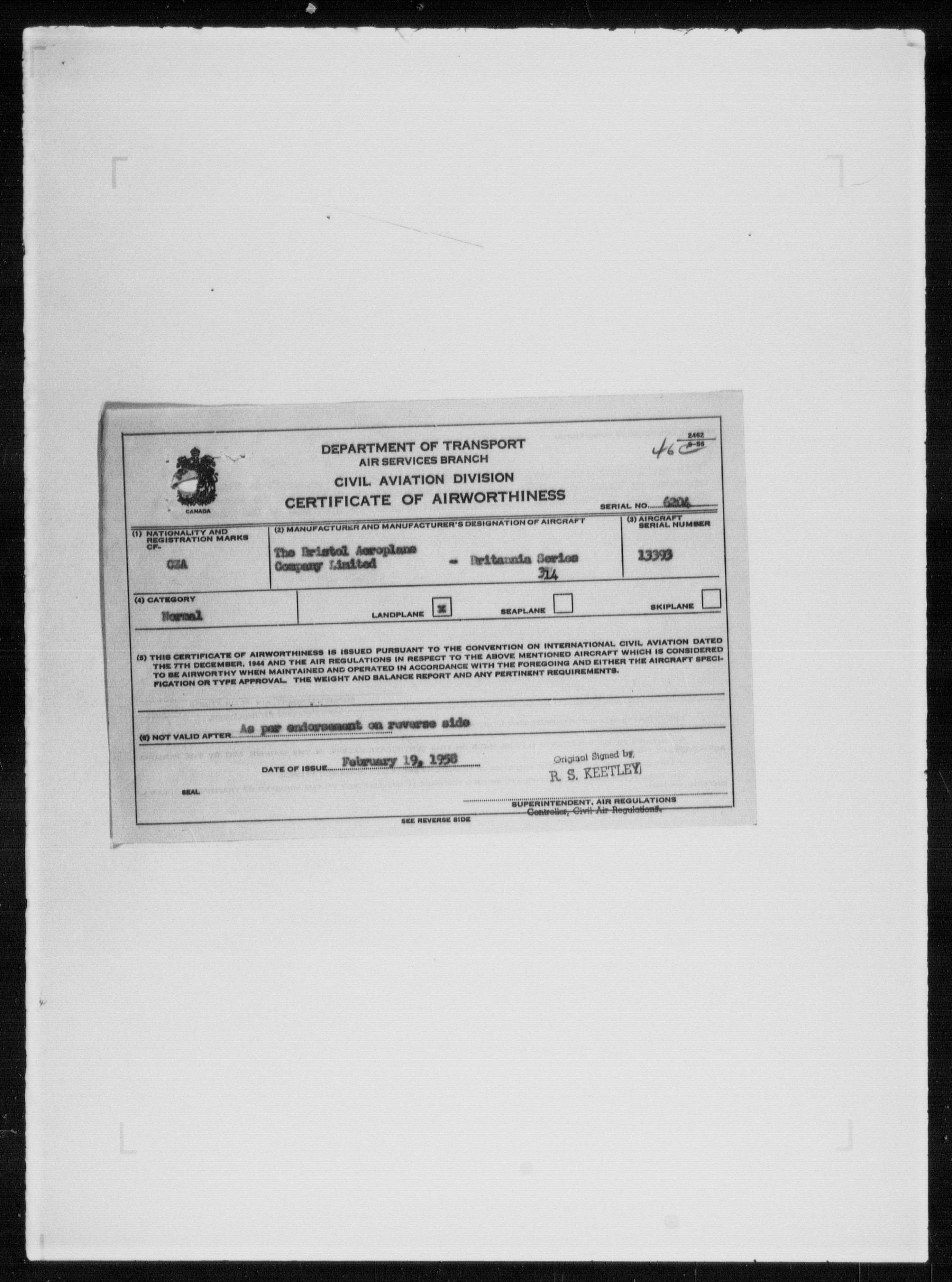 Department of Transport : Civil aircraft registration, inspection and operation files, block 5008, 1920-1986 - 7963