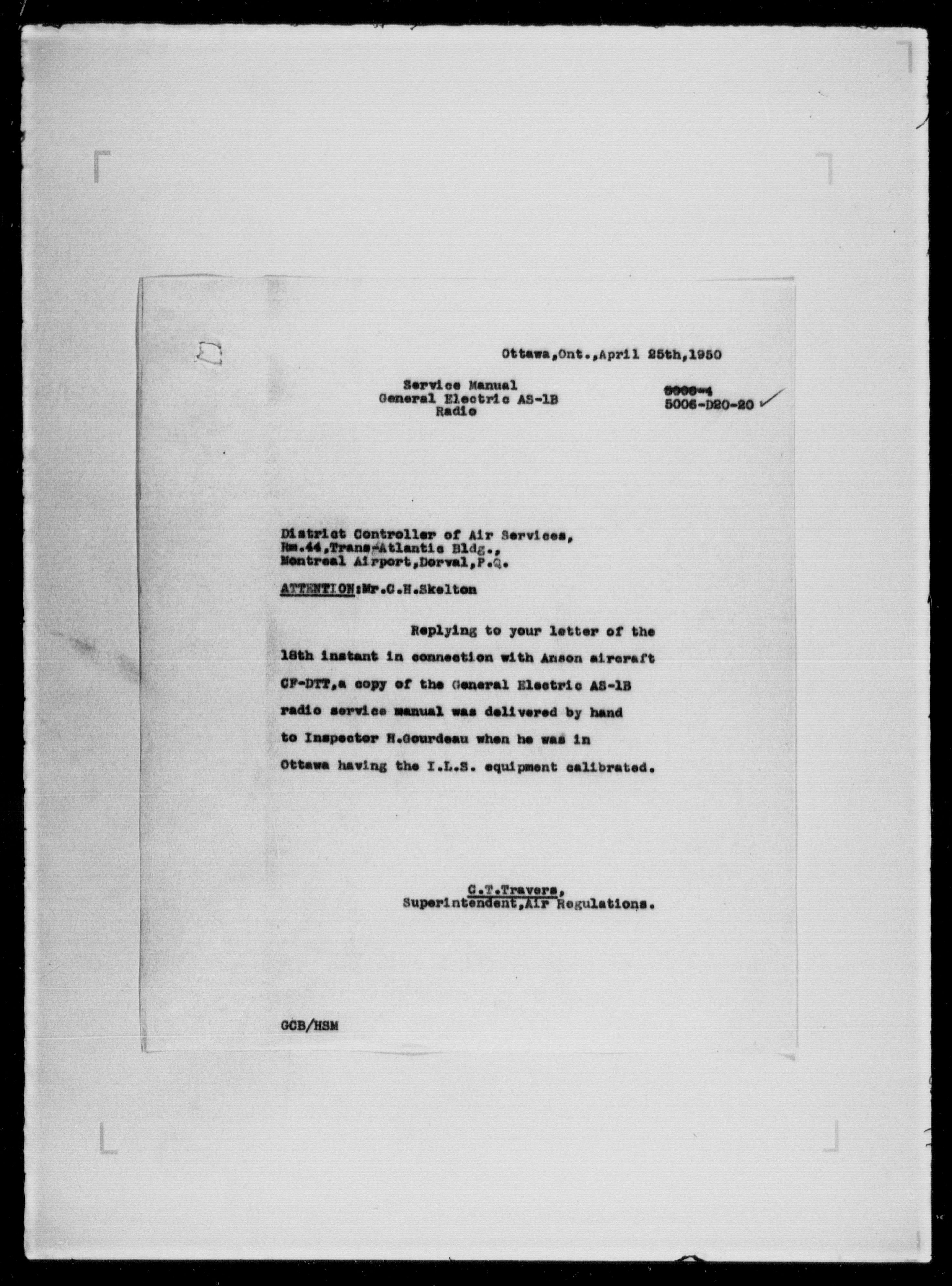 Department of Transport : Civil aircraft registration, inspection and operation files, block 5008, 1920-1986 - 7966