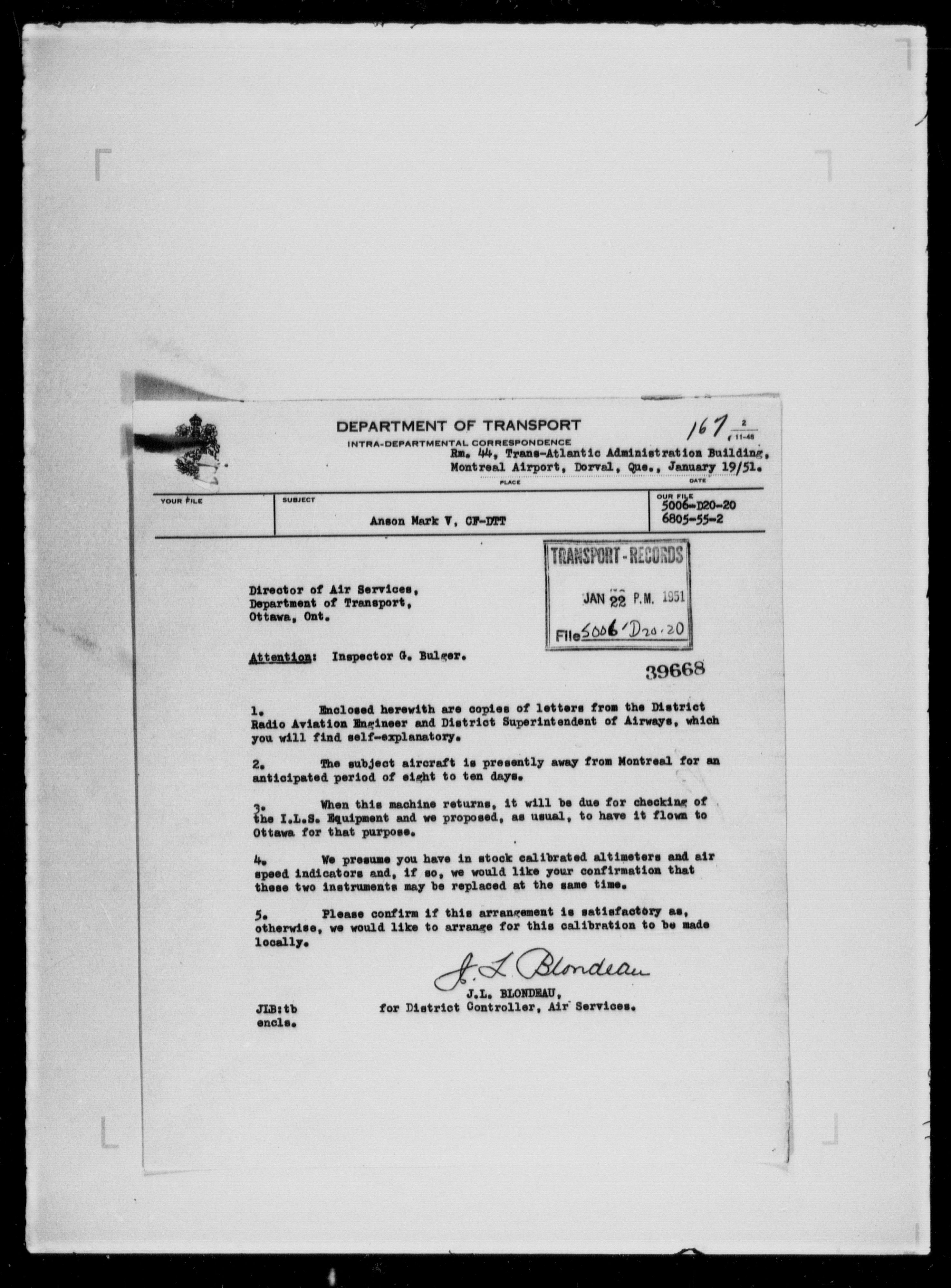 Department of Transport : Civil aircraft registration, inspection and operation files, block 5008, 1920-1986 - 7966