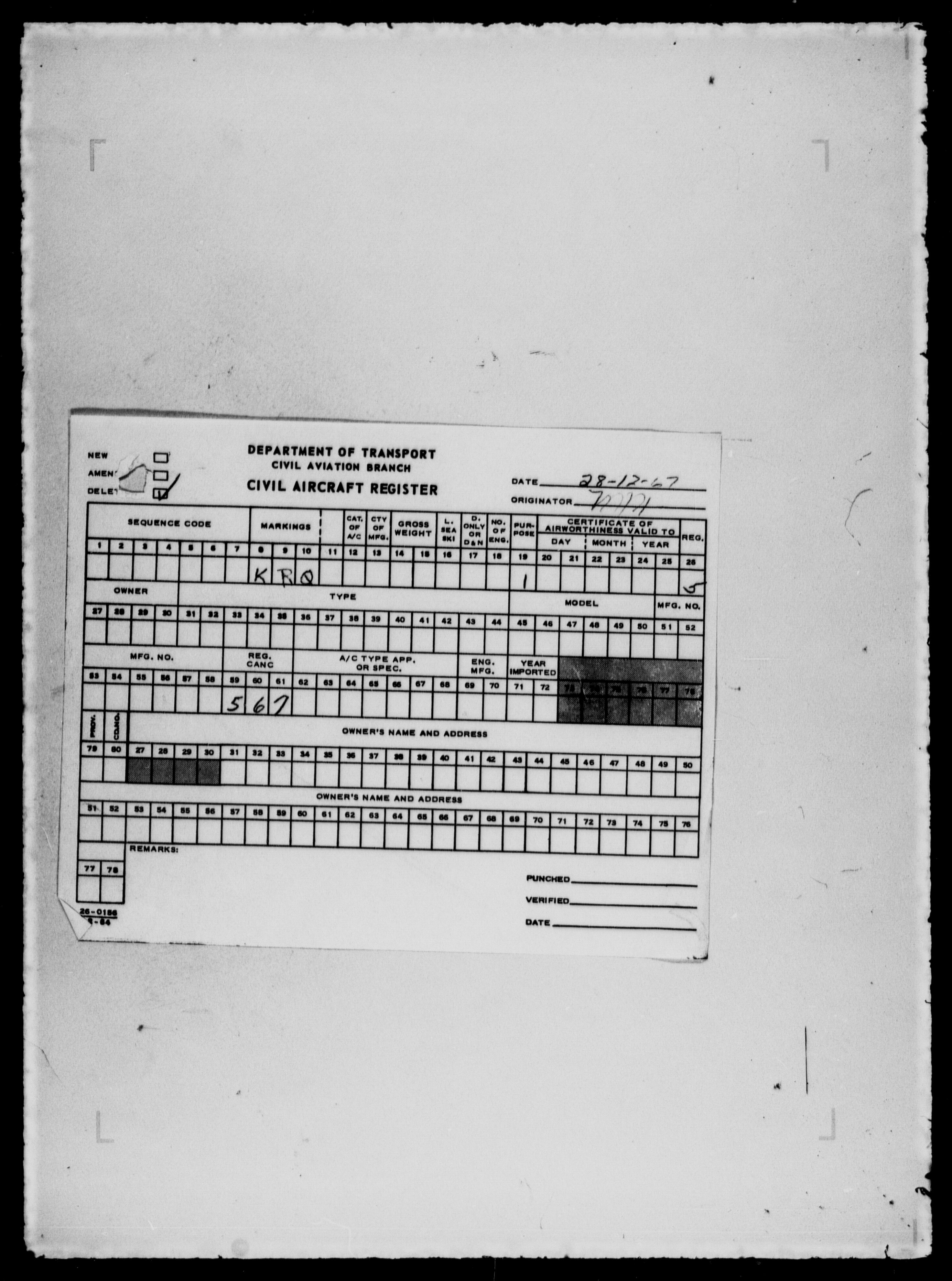Department of Transport : Civil aircraft registration, inspection and operation files, block 5008, 1920-1986 - T-7971