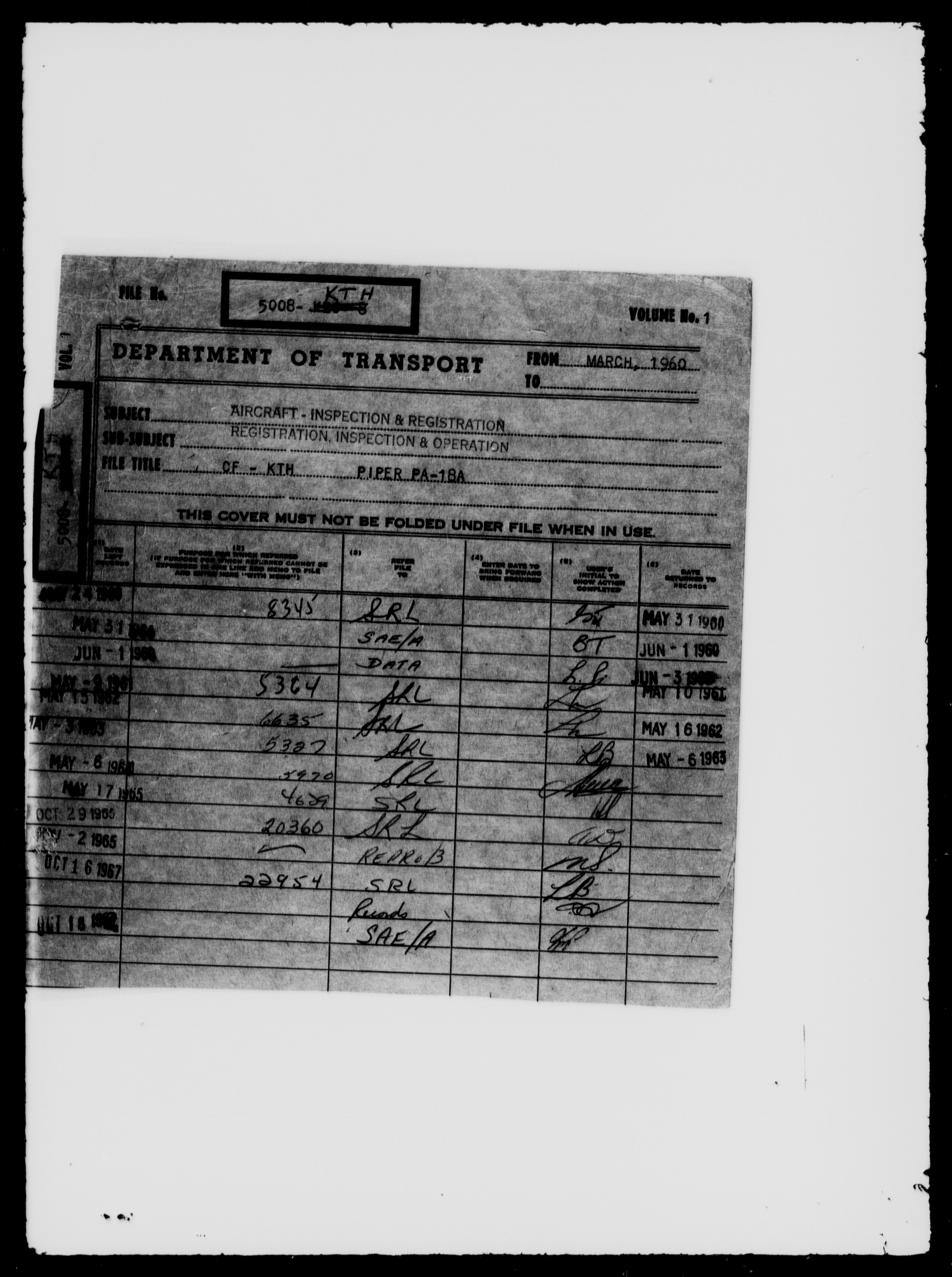 Department of Transport : Civil aircraft registration, inspection and operation files, block 5008, 1920-1986 - T-7971