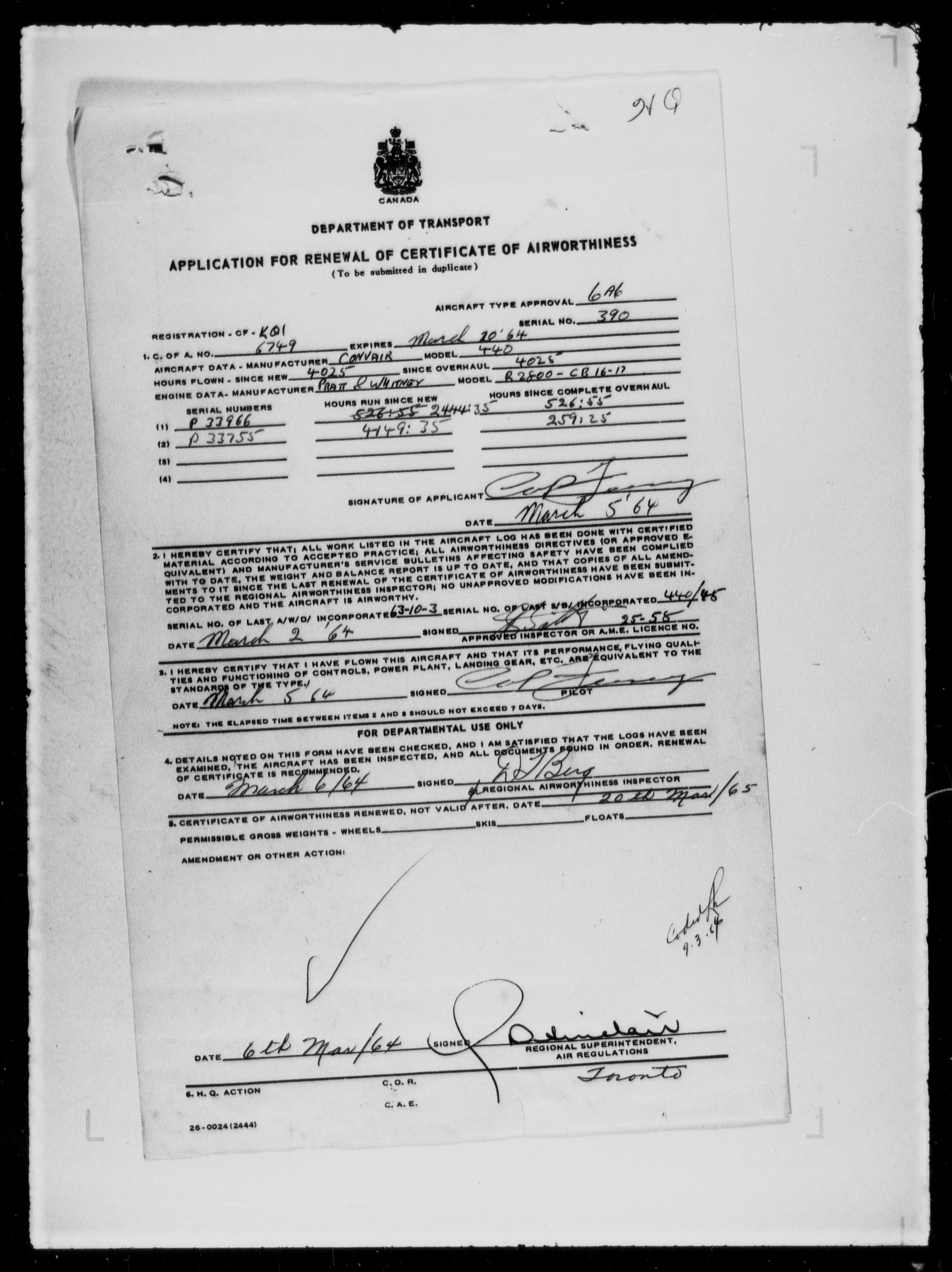 Department of Transport : Civil aircraft registration, inspection and operation files, 1920-1986 : T-7975