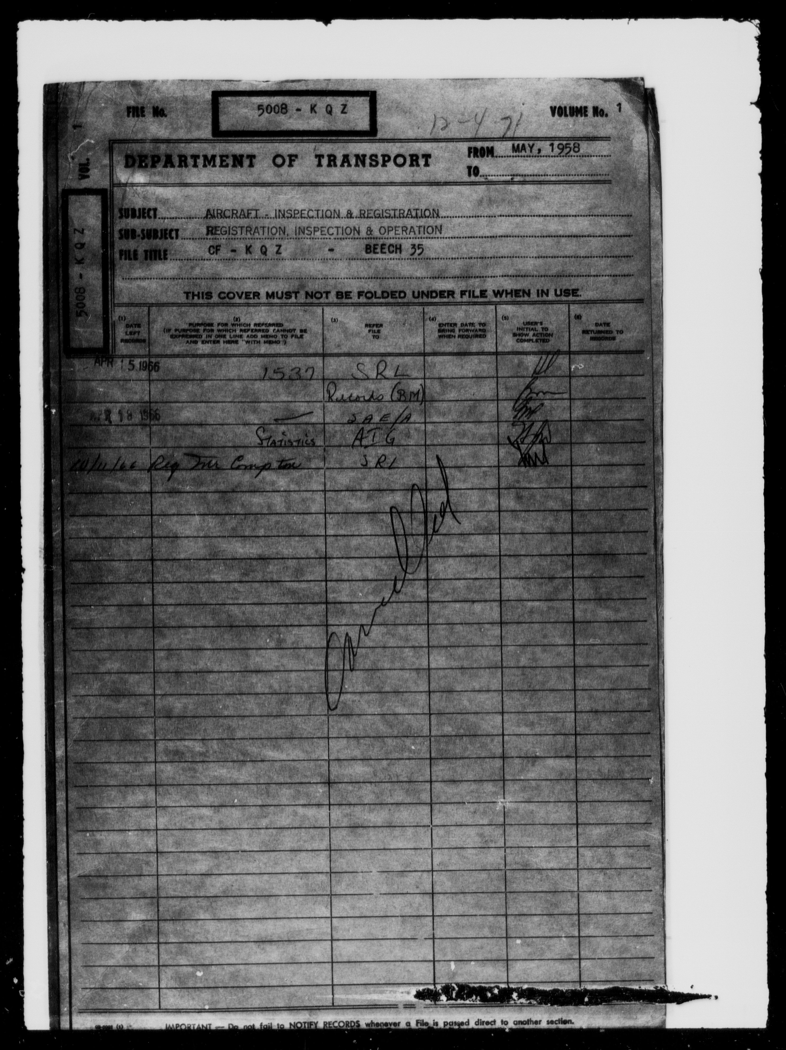 Department of Transport : Civil aircraft registration, inspection and operation files, block 5008, 1920-1986 - 7975