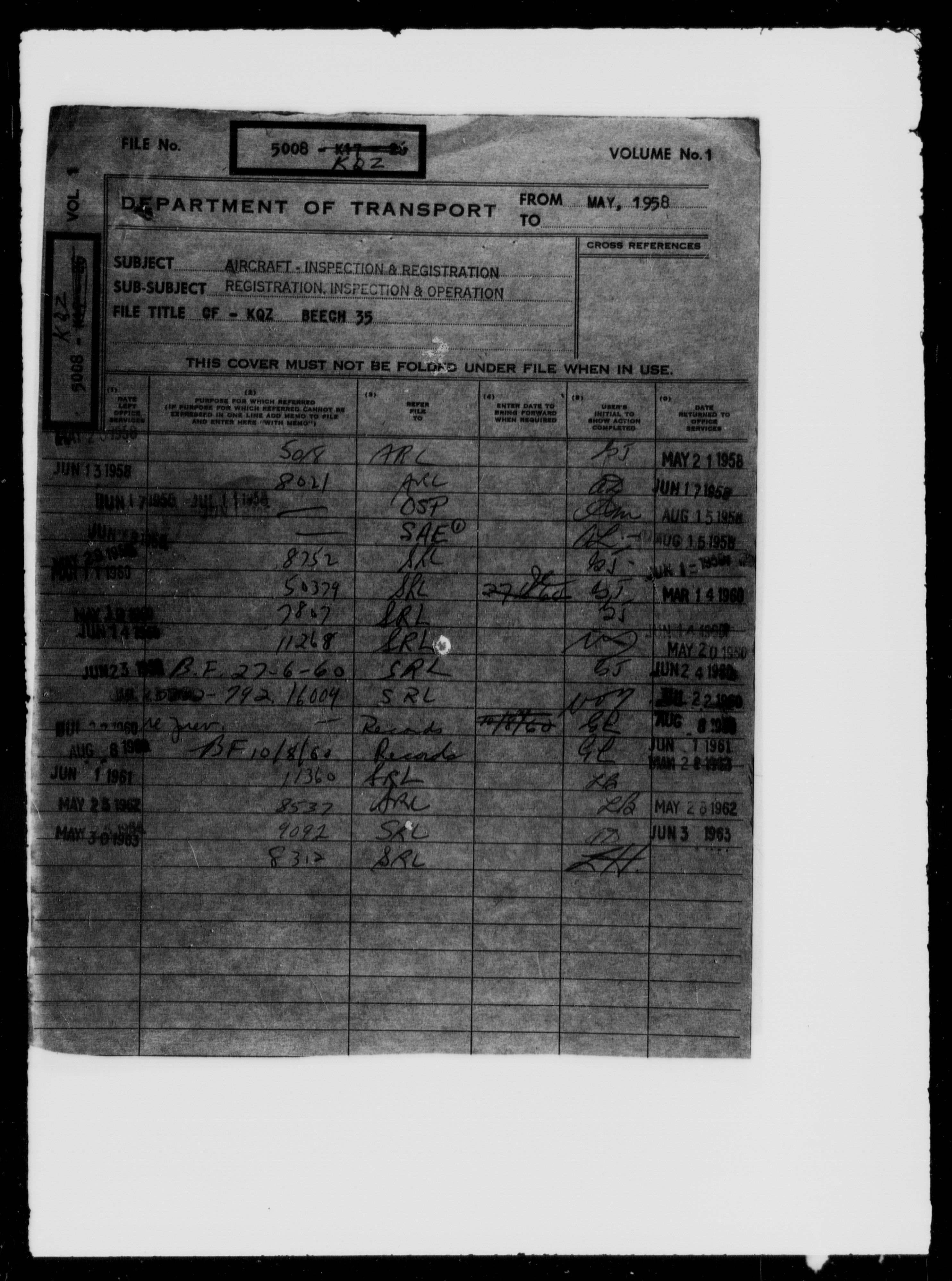 Department of Transport : Civil aircraft registration, inspection and operation files, block 5008, 1920-1986 - 7975
