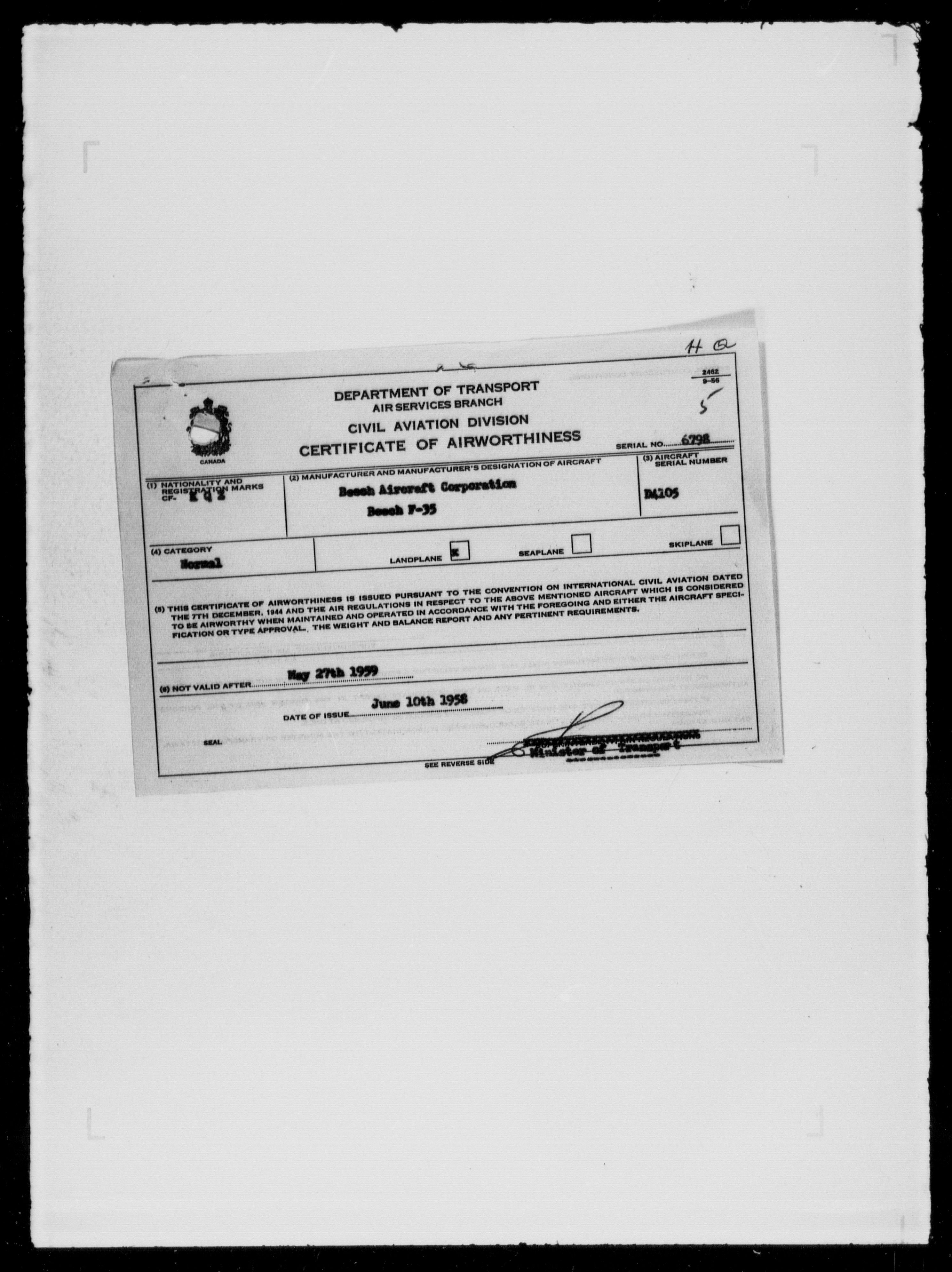 Department of Transport : Civil aircraft registration, inspection and operation files, 1920-1986 : T-7975
