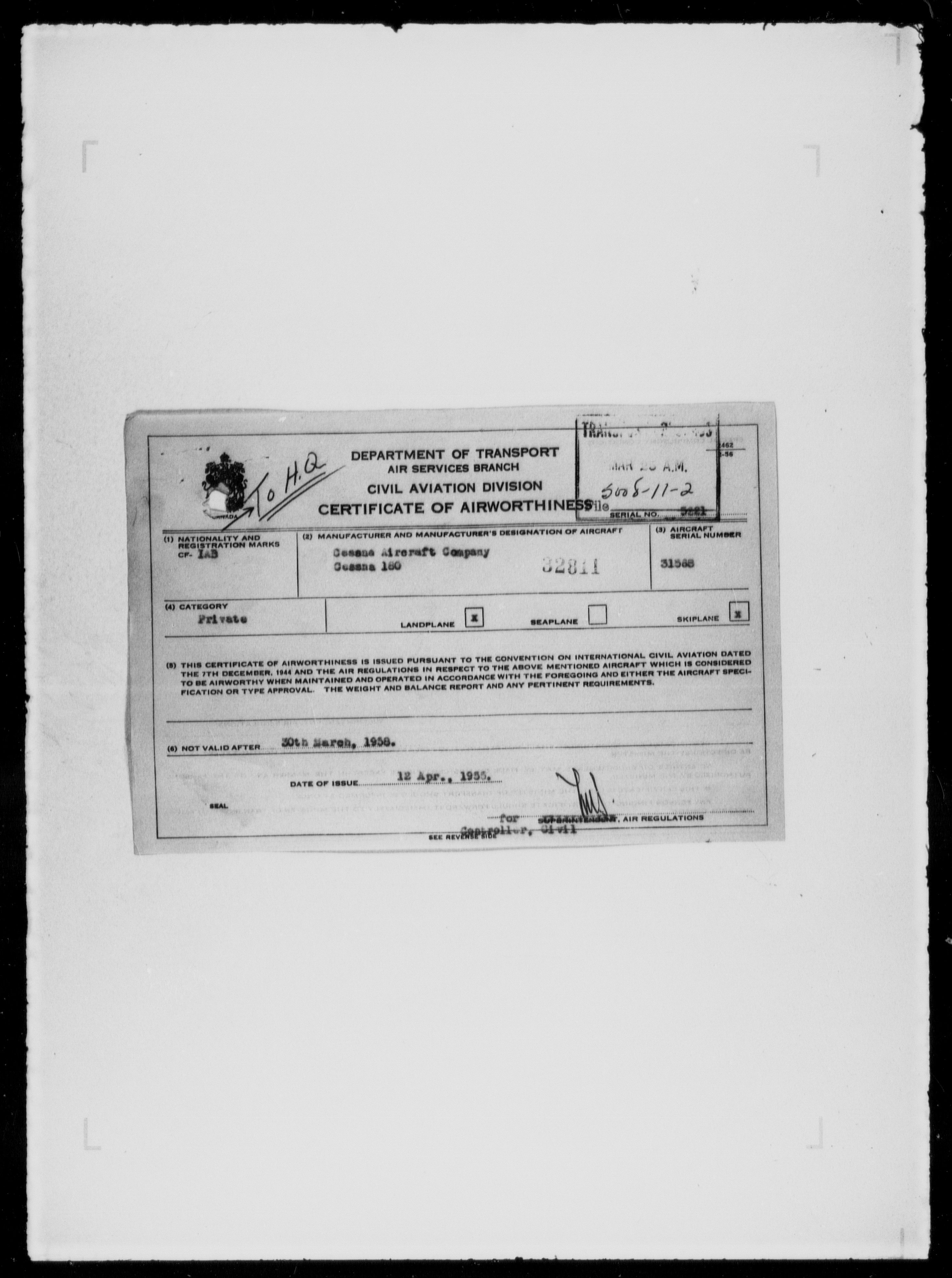 Department of Transport : Civil aircraft registration, inspection and operation files, 1920-1986 : T-7975