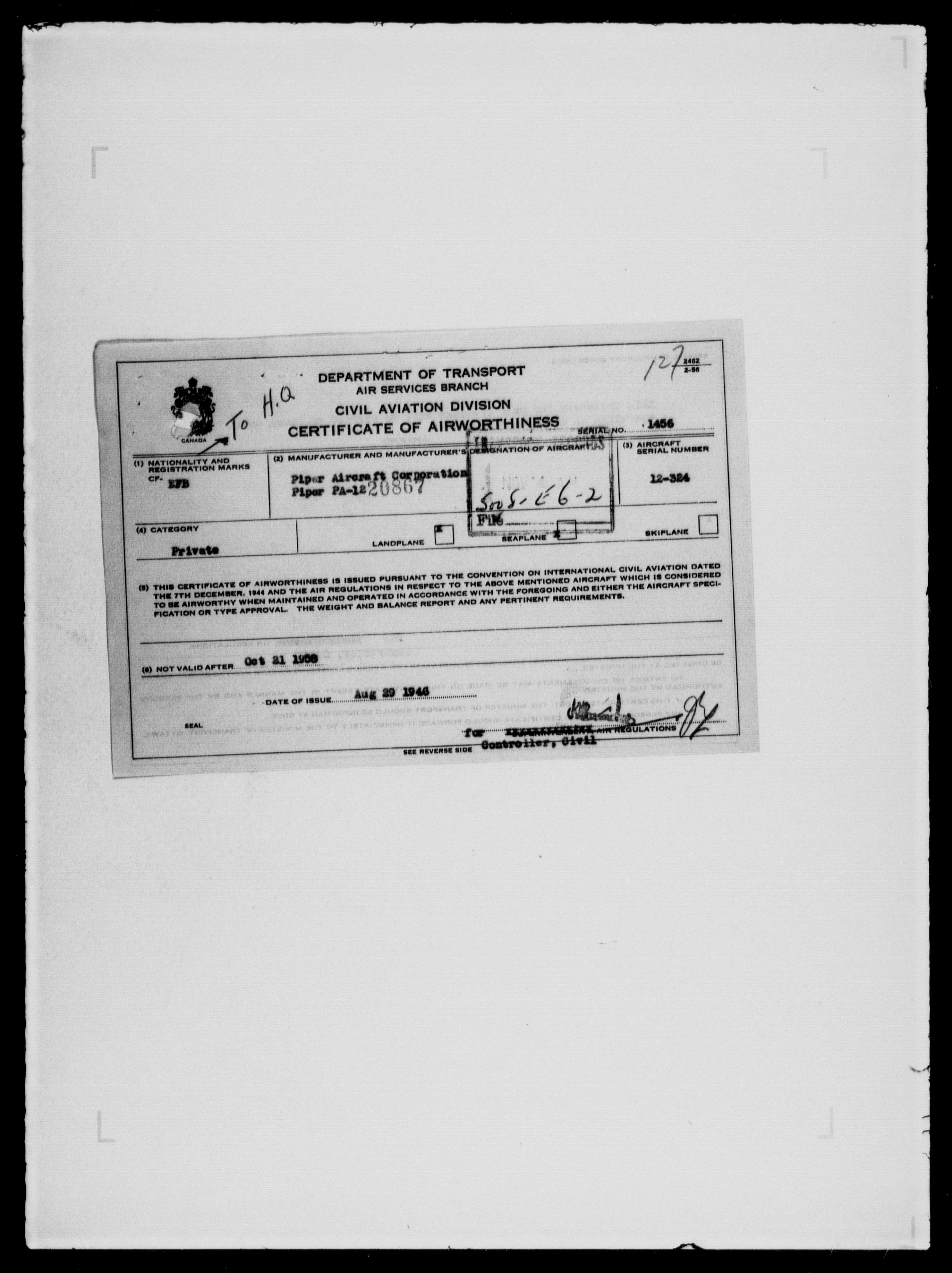 Department of Transport : Civil aircraft registration, inspection and operation files, block 5008, 1920-1986 - 7978
