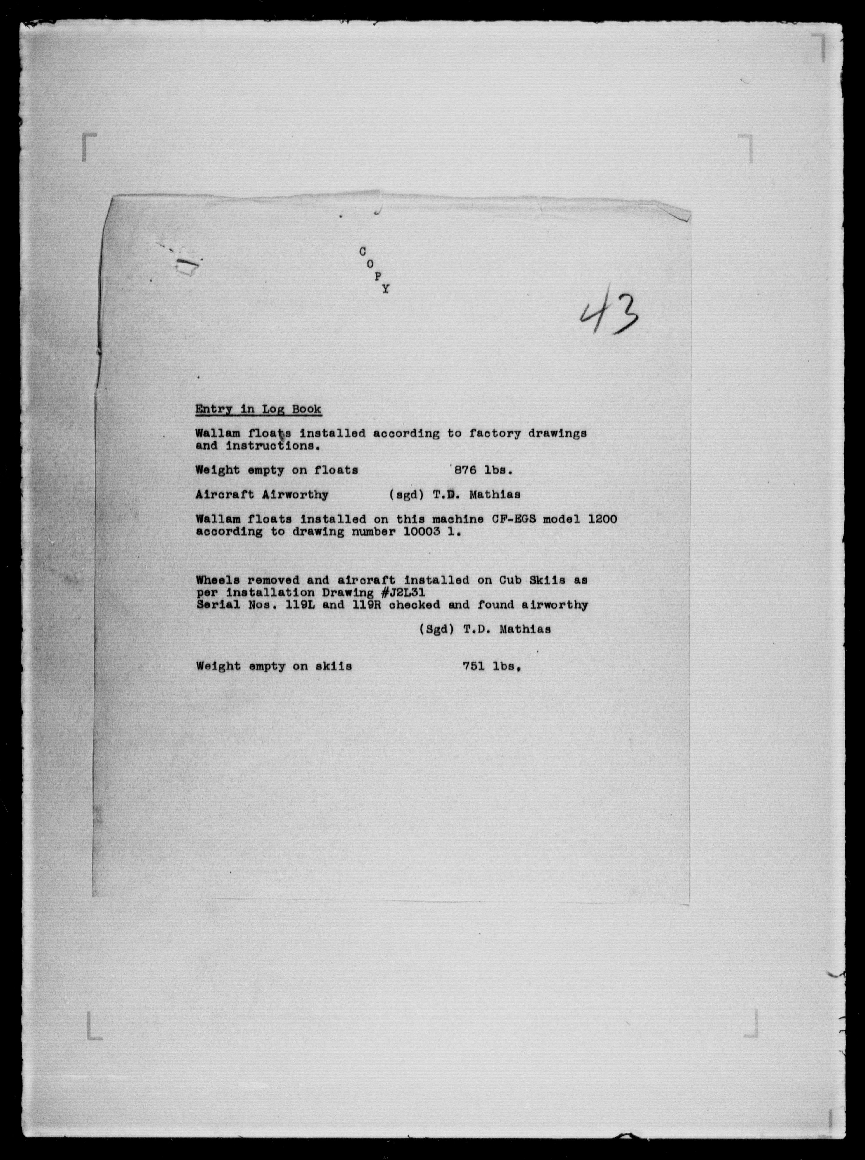 Department of Transport : Civil aircraft registration, inspection and operation files, block 5008, 1920-1986 - 7978