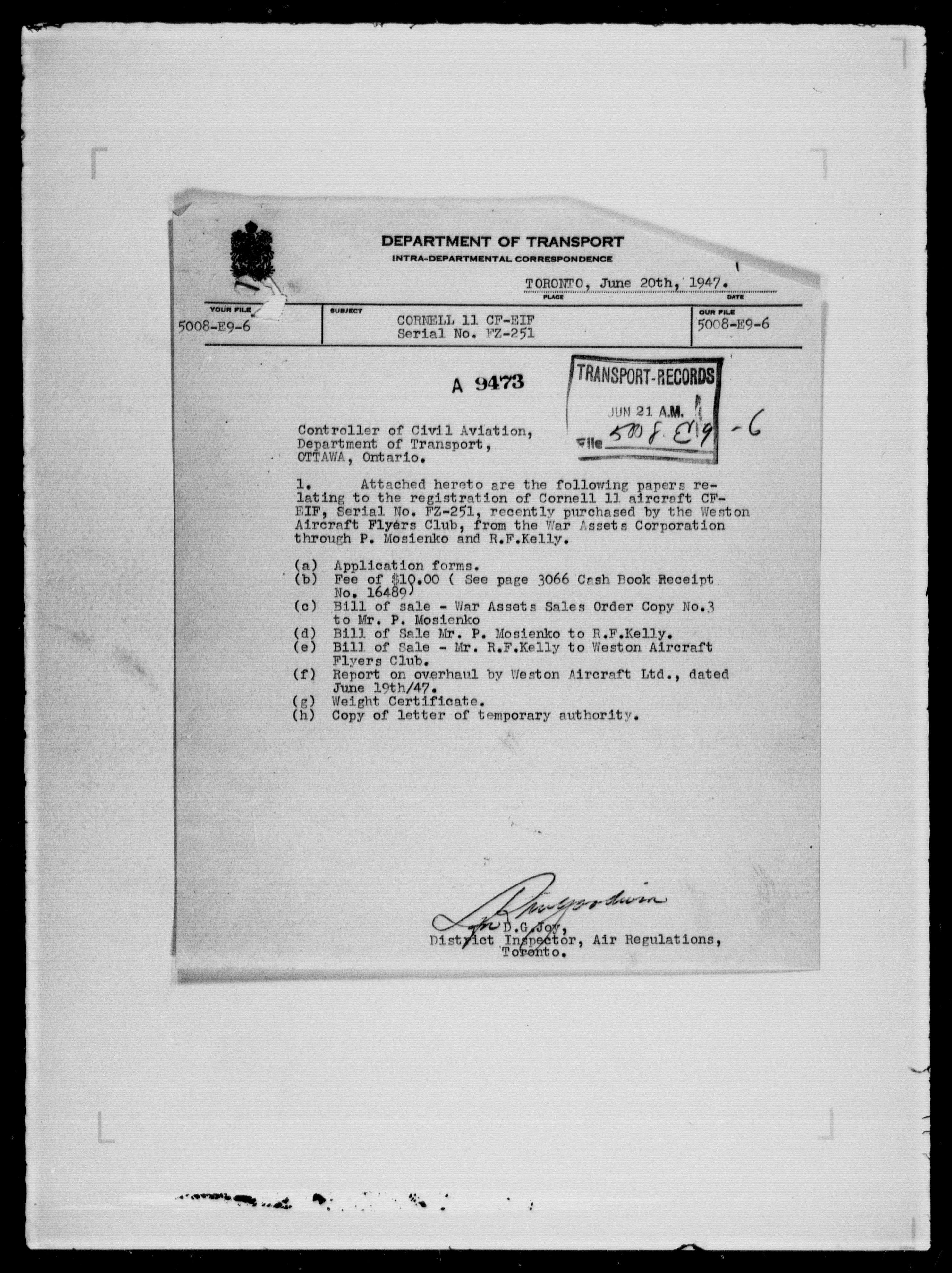 Department of Transport : Civil aircraft registration, inspection and operation files, block 5008, 1920-1986 - 7978