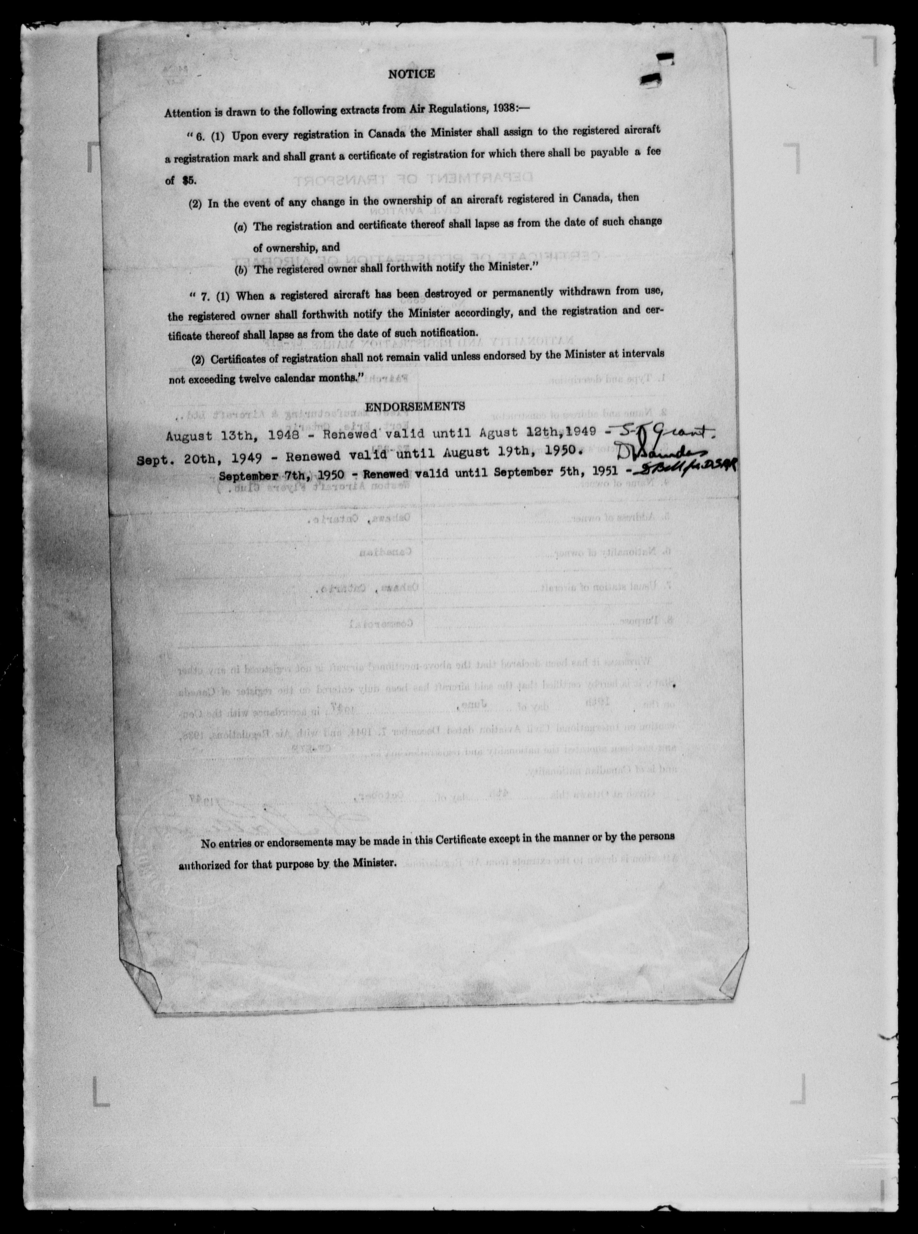 Department of Transport : Civil aircraft registration, inspection and operation files, block 5008, 1920-1986 - 7978