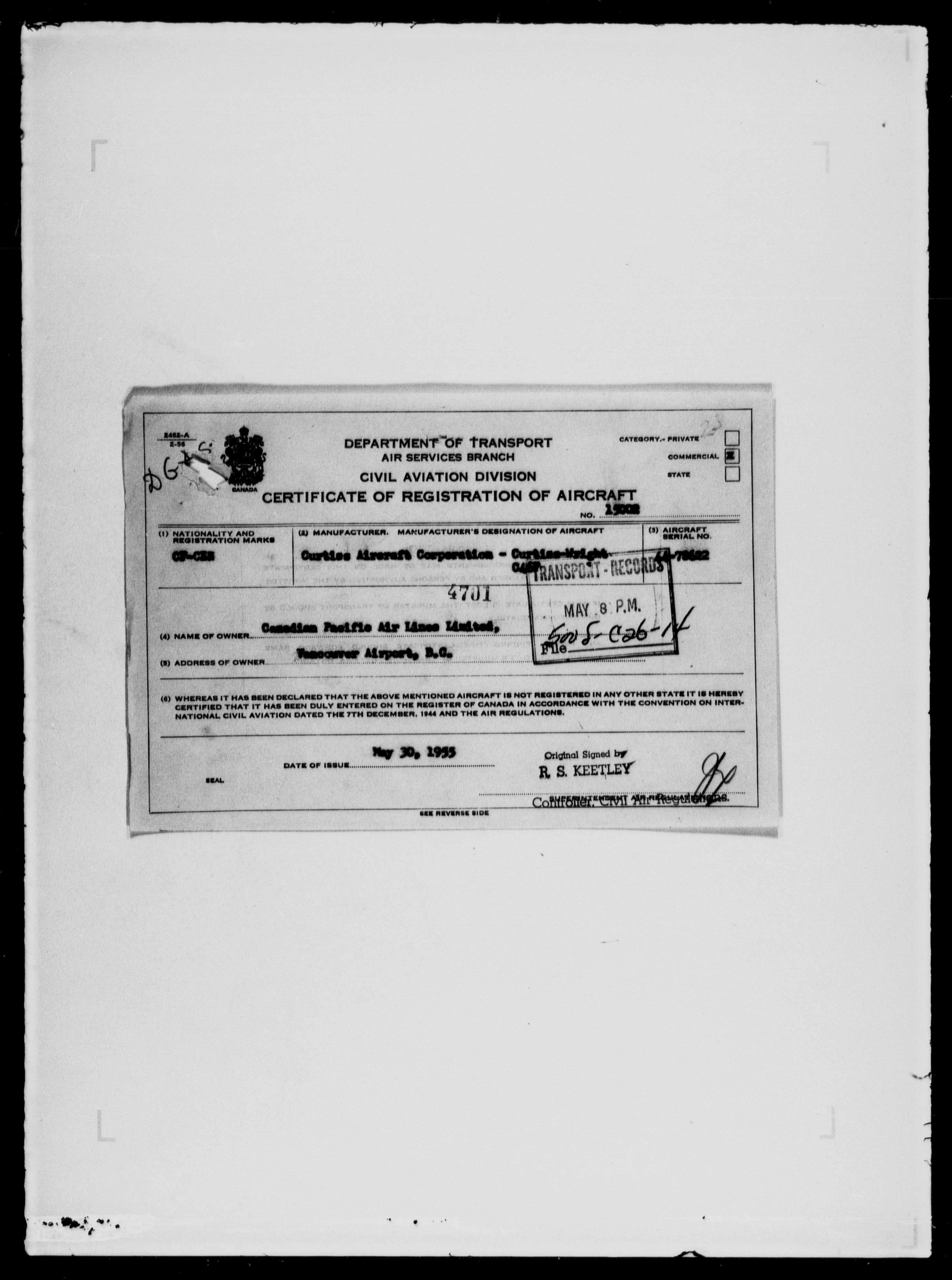Department of Transport : Civil aircraft registration, inspection and operation files, block 5008, 1920-1986 - 7978