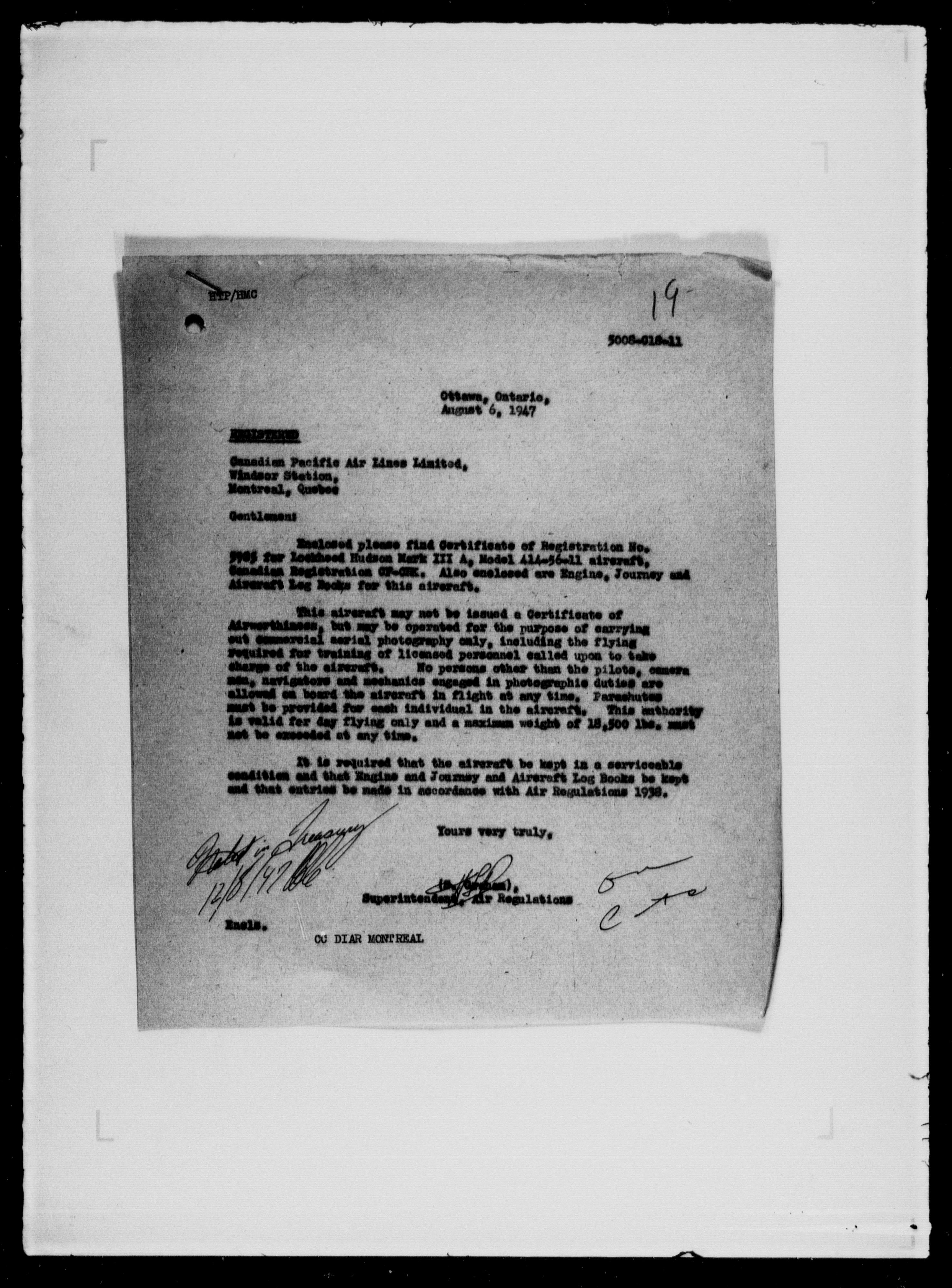 Department of Transport : Civil aircraft registration, inspection and operation files, block 5008, 1920-1986 - 7978