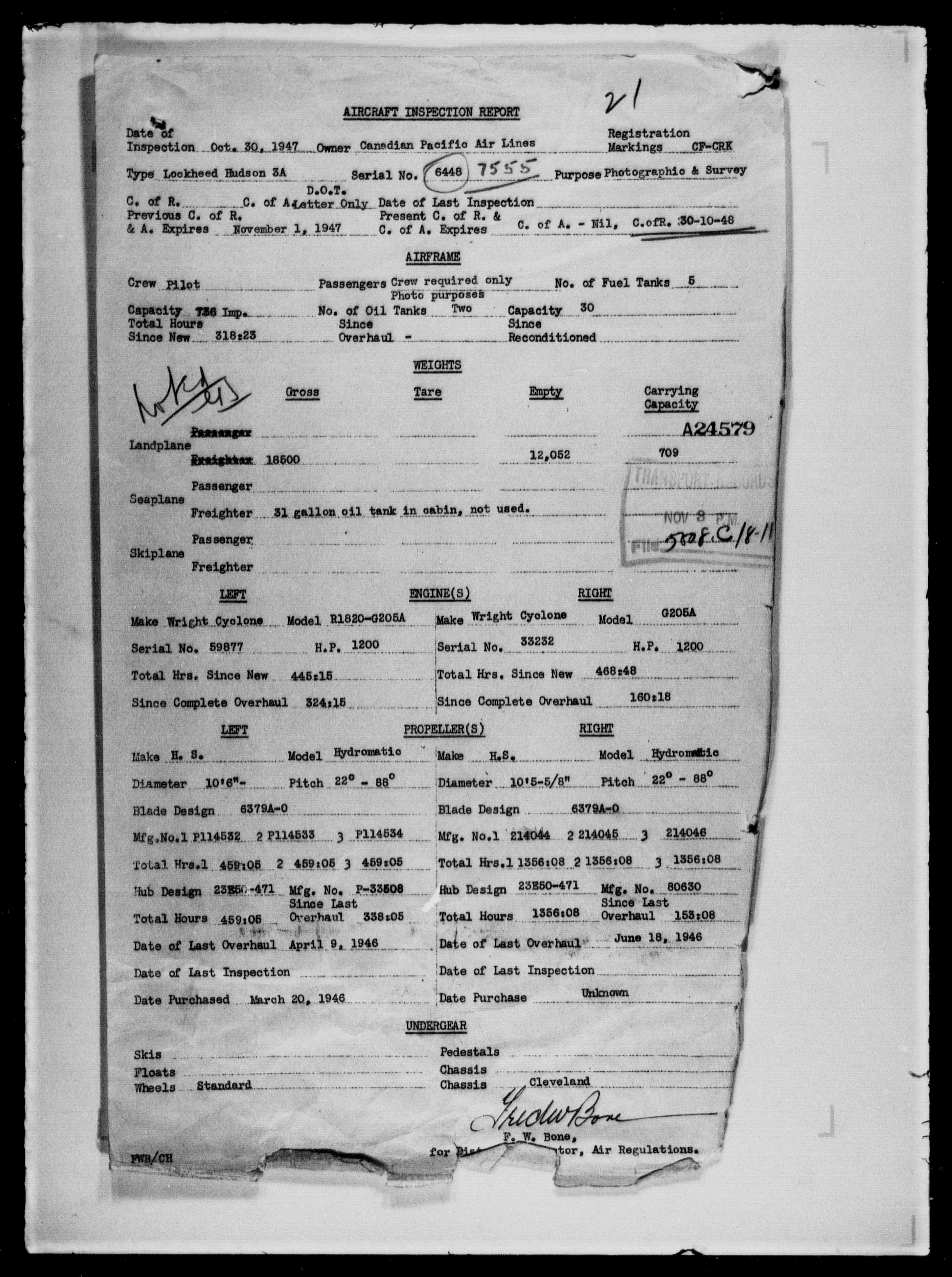 Department of Transport : Civil aircraft registration, inspection and operation files, block 5008, 1920-1986 - 7978