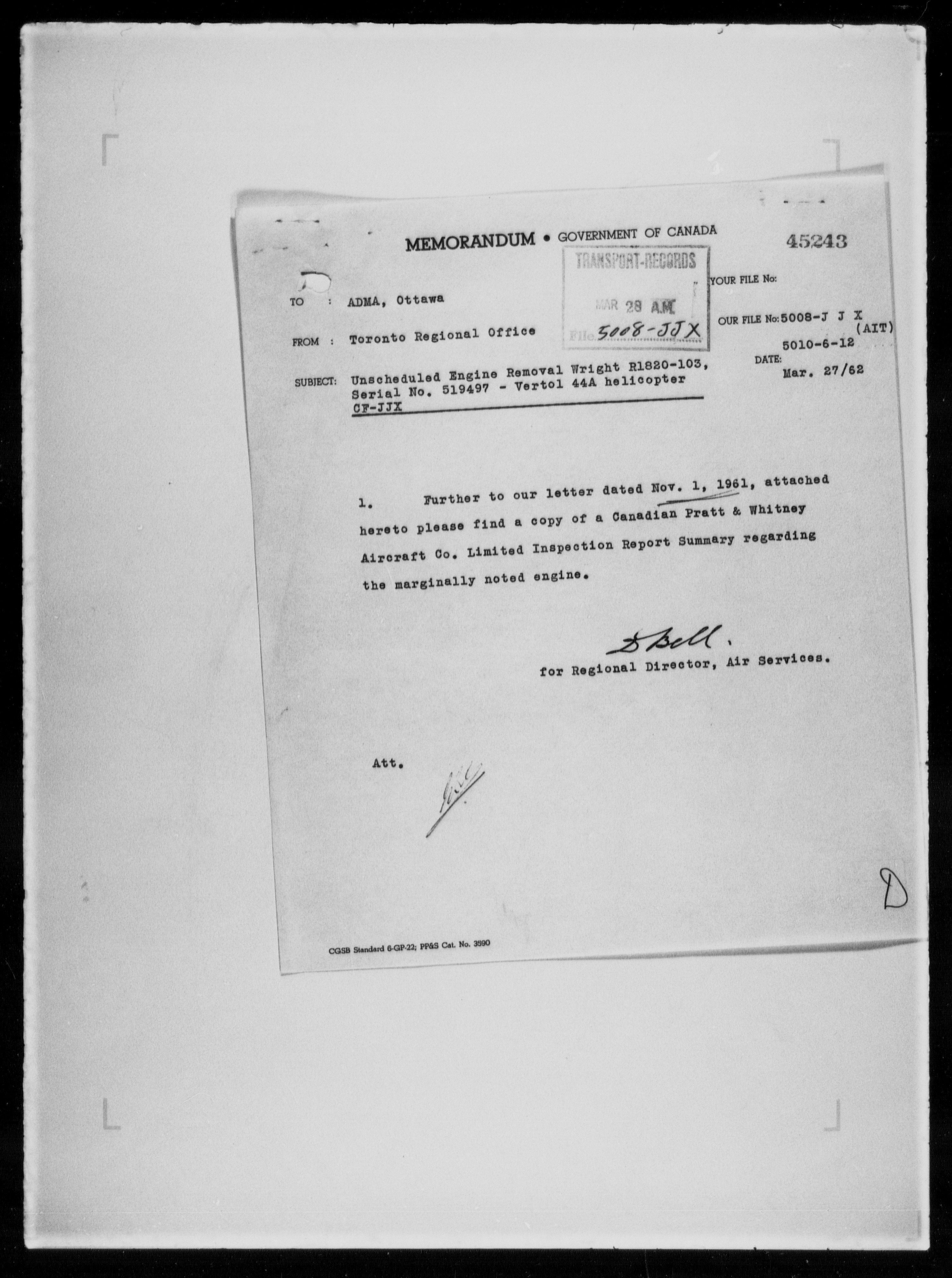 Department of Transport : Civil aircraft registration, inspection and operation files, 1920-1986 : T-7982