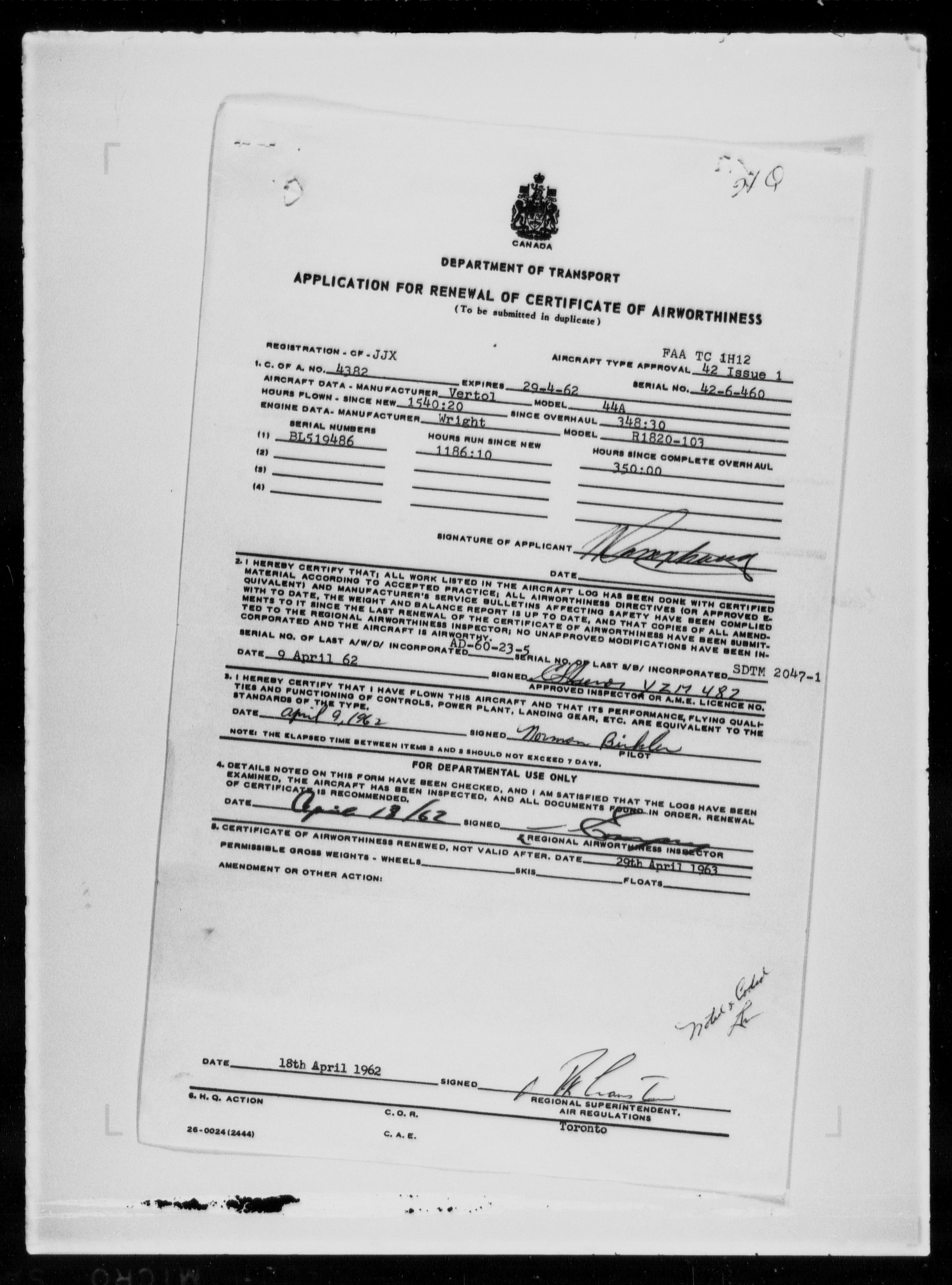 Department of Transport : Civil aircraft registration, inspection and operation files, block 5008, 1920-1986 - 7982
