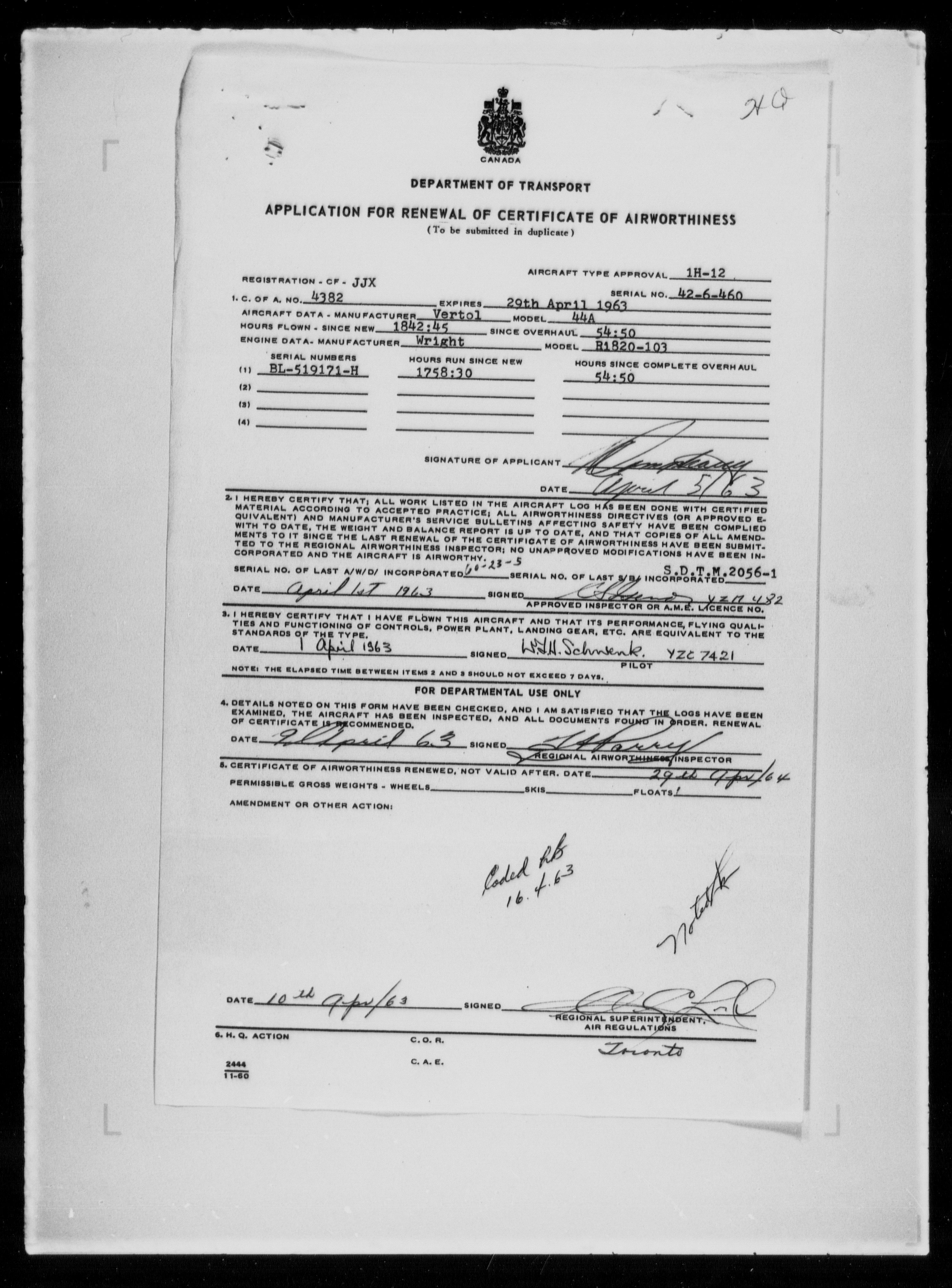Department of Transport : Civil aircraft registration, inspection and operation files, block 5008, 1920-1986 - 7982