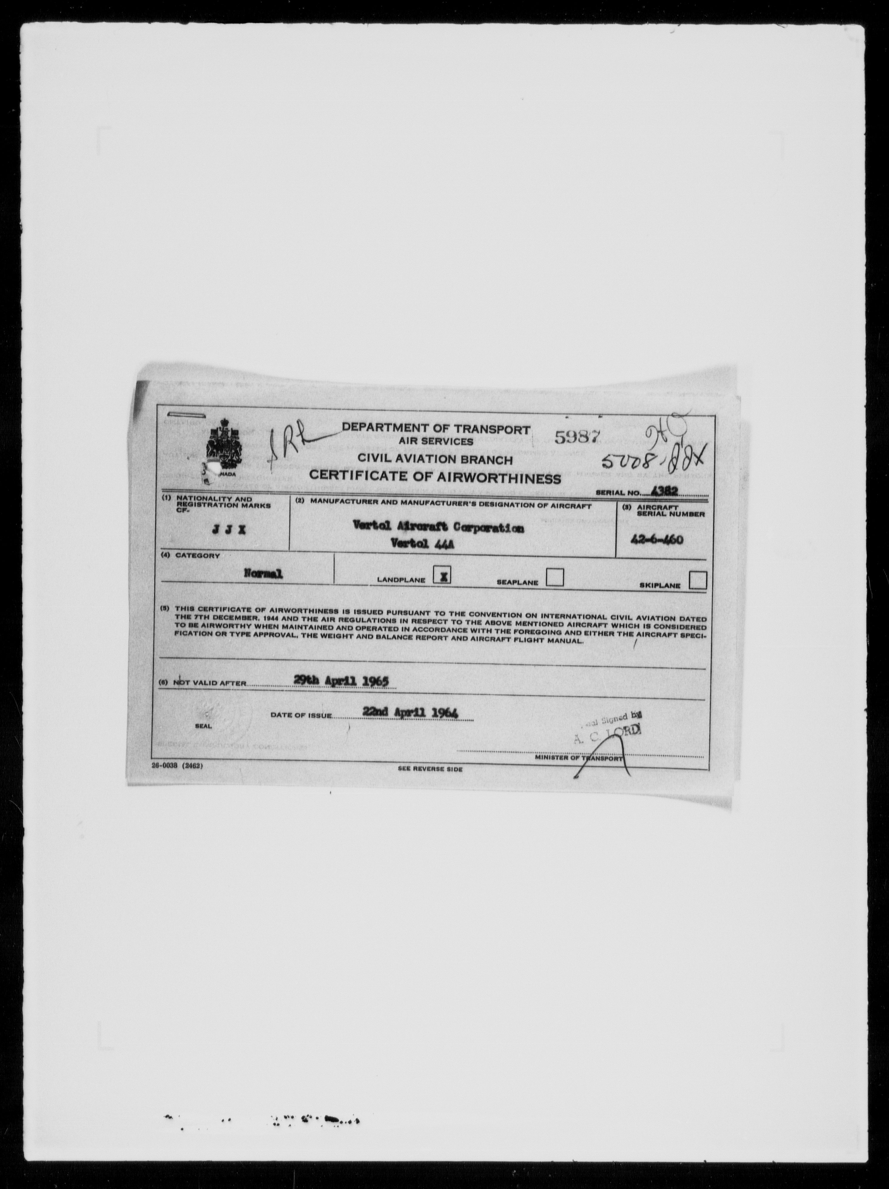 Department of Transport : Civil aircraft registration, inspection and operation files, block 5008, 1920-1986 - 7982