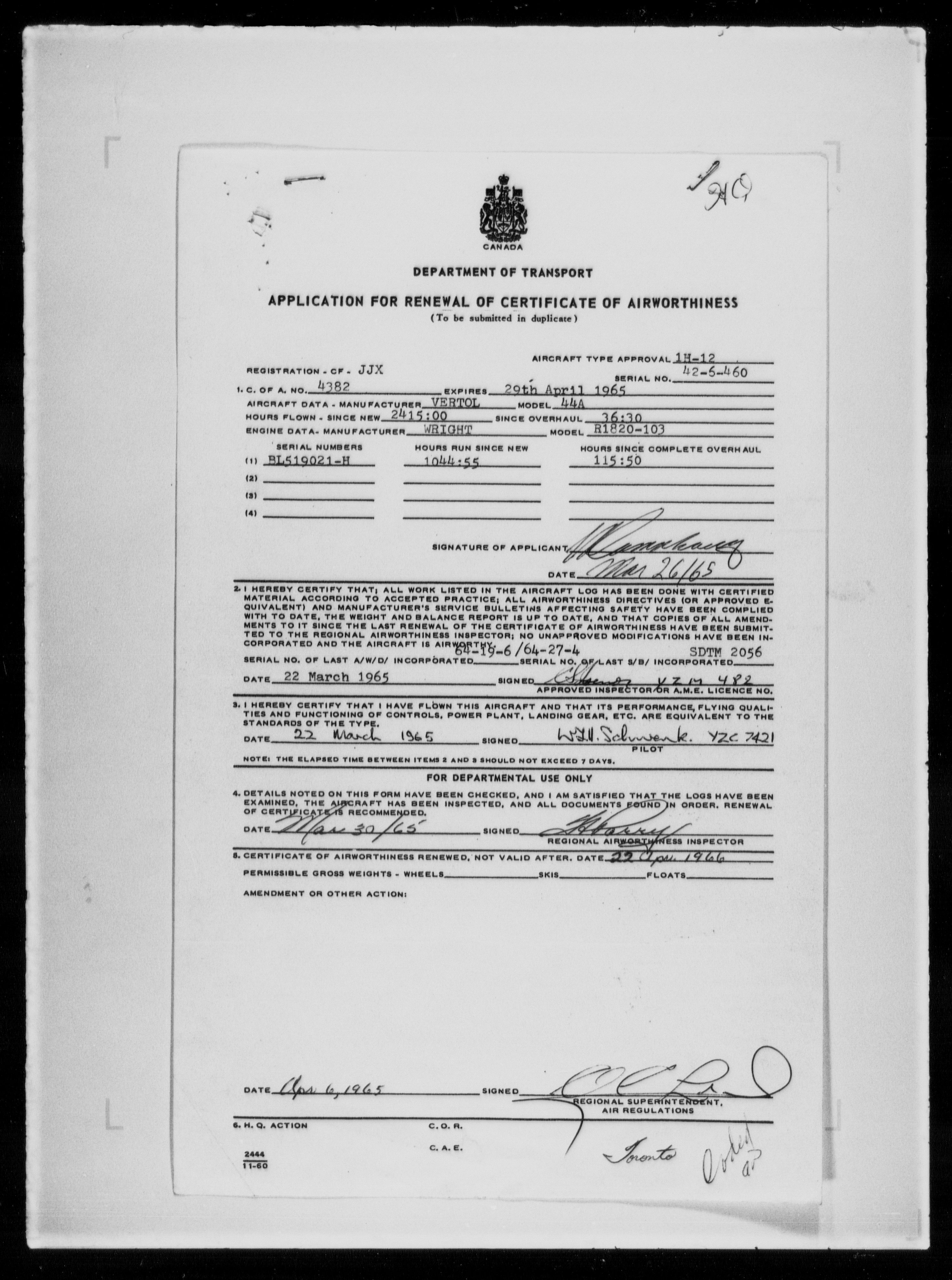 Department of Transport : Civil aircraft registration, inspection and operation files, 1920-1986 : T-7982