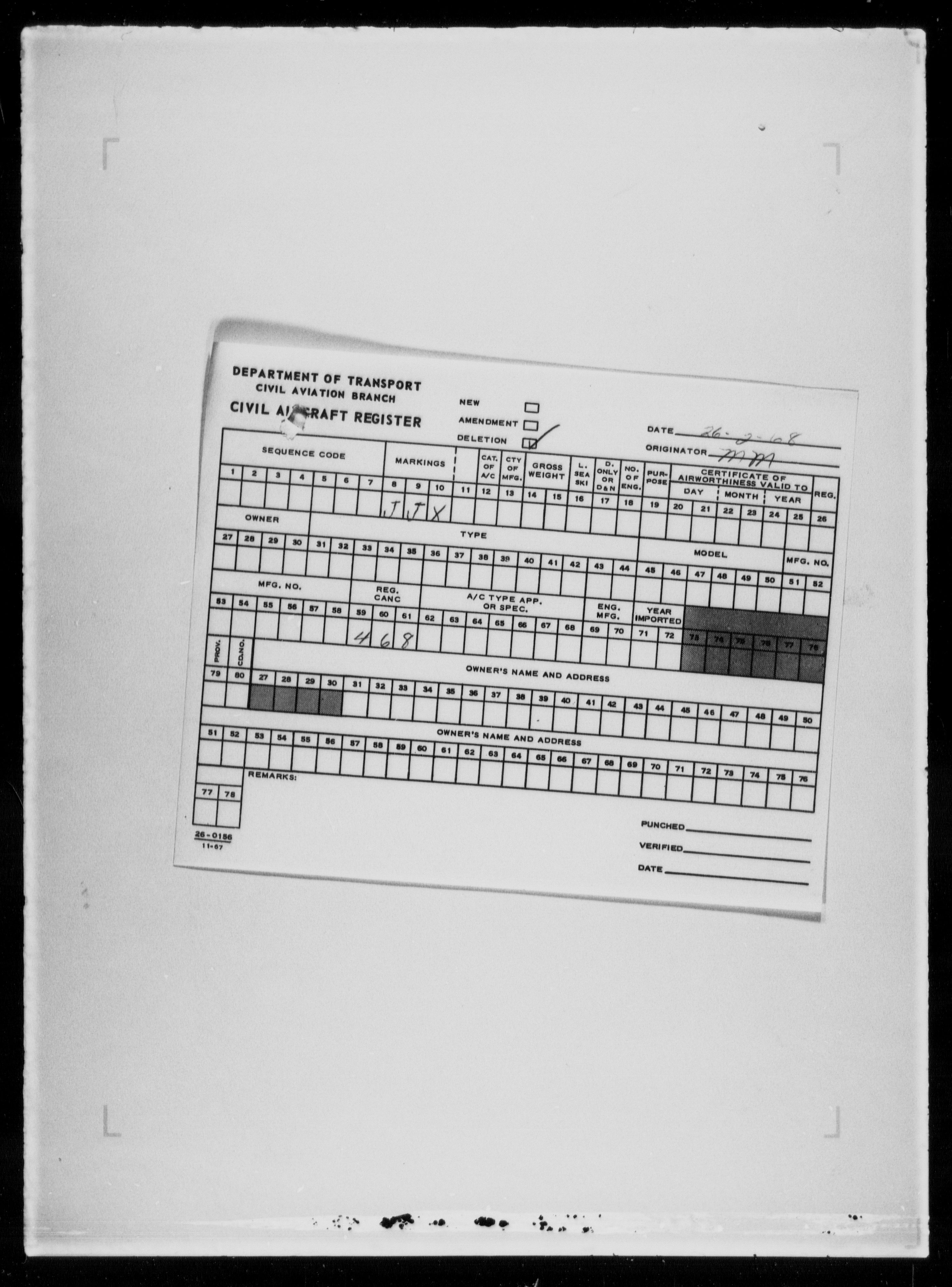 Department of Transport : Civil aircraft registration, inspection and operation files, 1920-1986 : T-7982