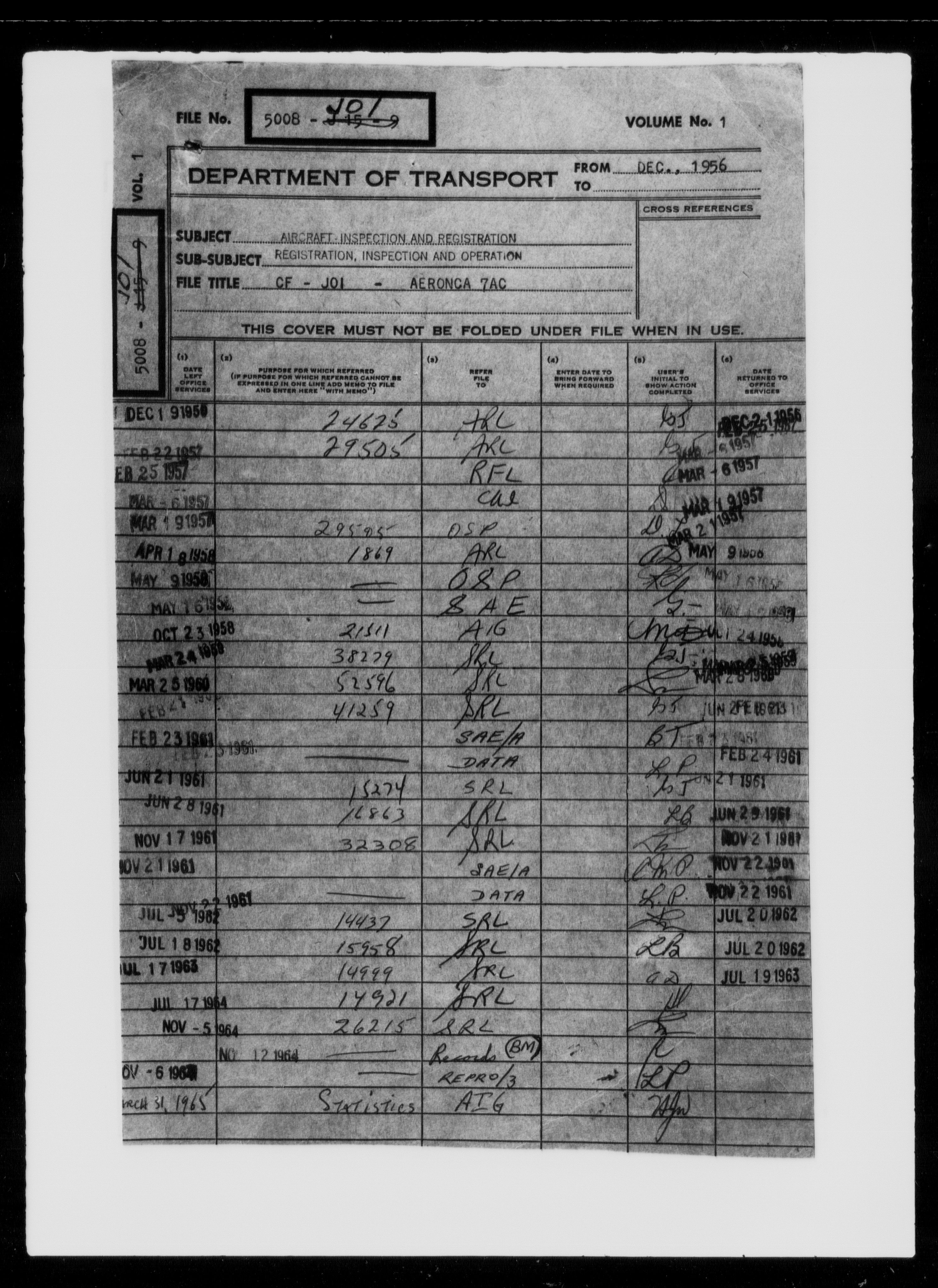 Department of Transport : Civil aircraft registration, inspection and operation files, block 5008, 1920-1986 - 7982