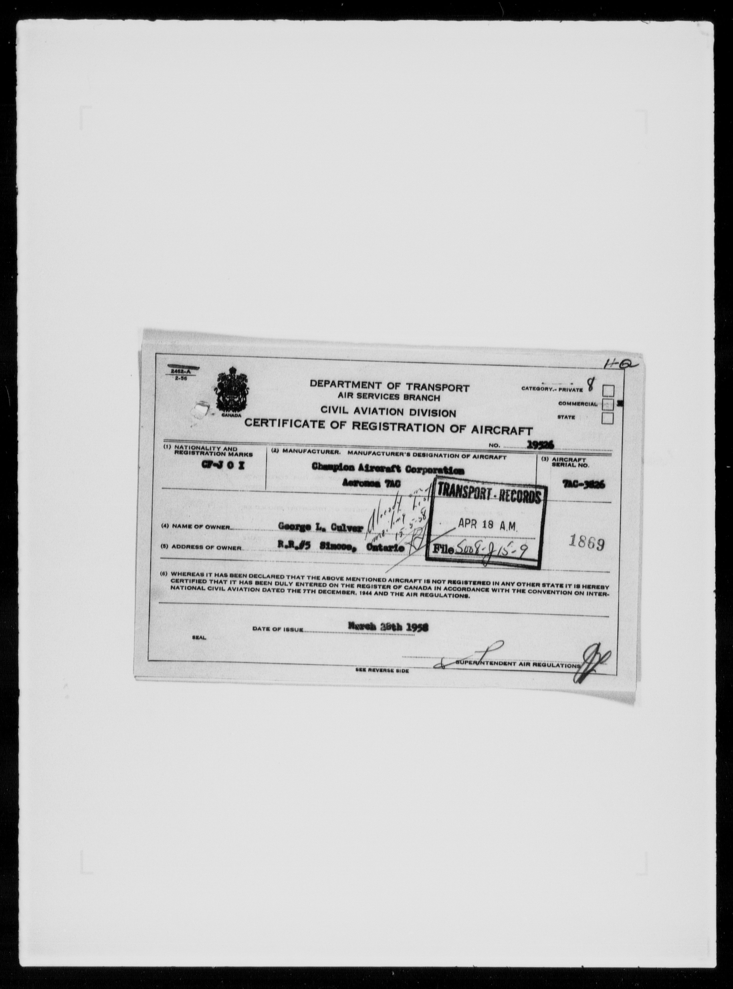 Department of Transport : Civil aircraft registration, inspection and operation files, block 5008, 1920-1986 - 7982