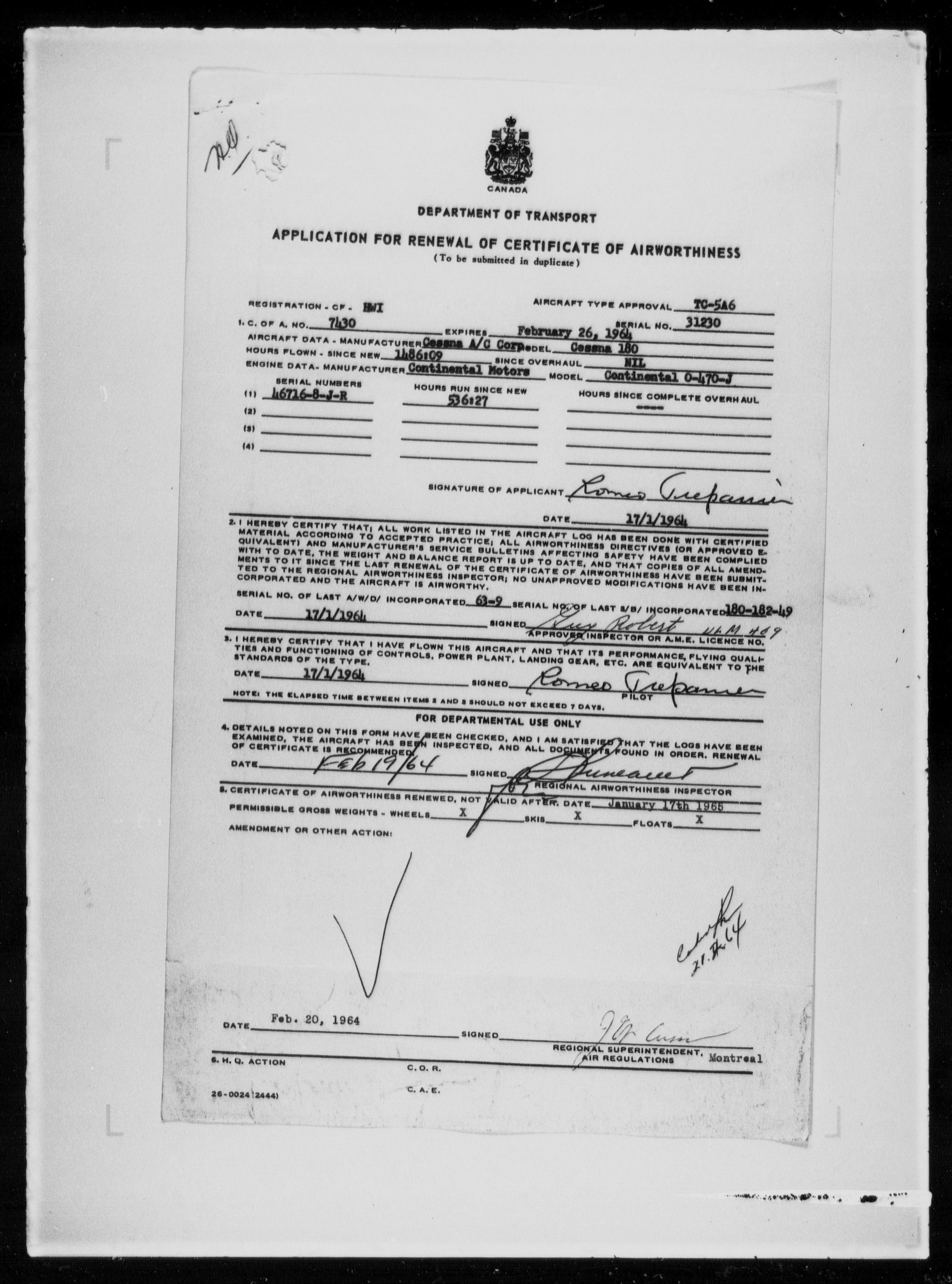 Department of Transport : Civil aircraft registration, inspection and operation files, block 5008, 1920-1986 - 7982