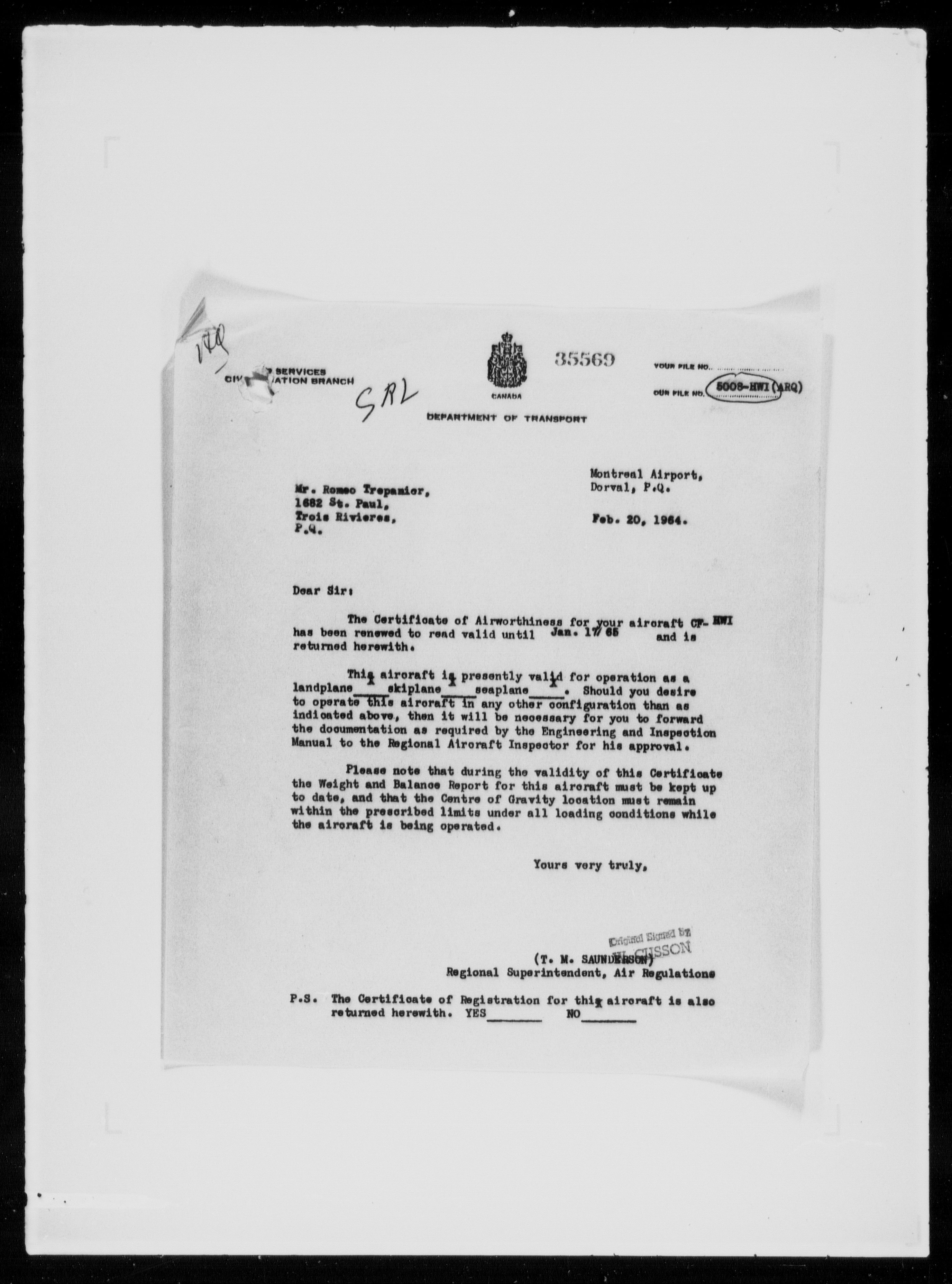 Department of Transport : Civil aircraft registration, inspection and operation files, block 5008, 1920-1986 - 7982