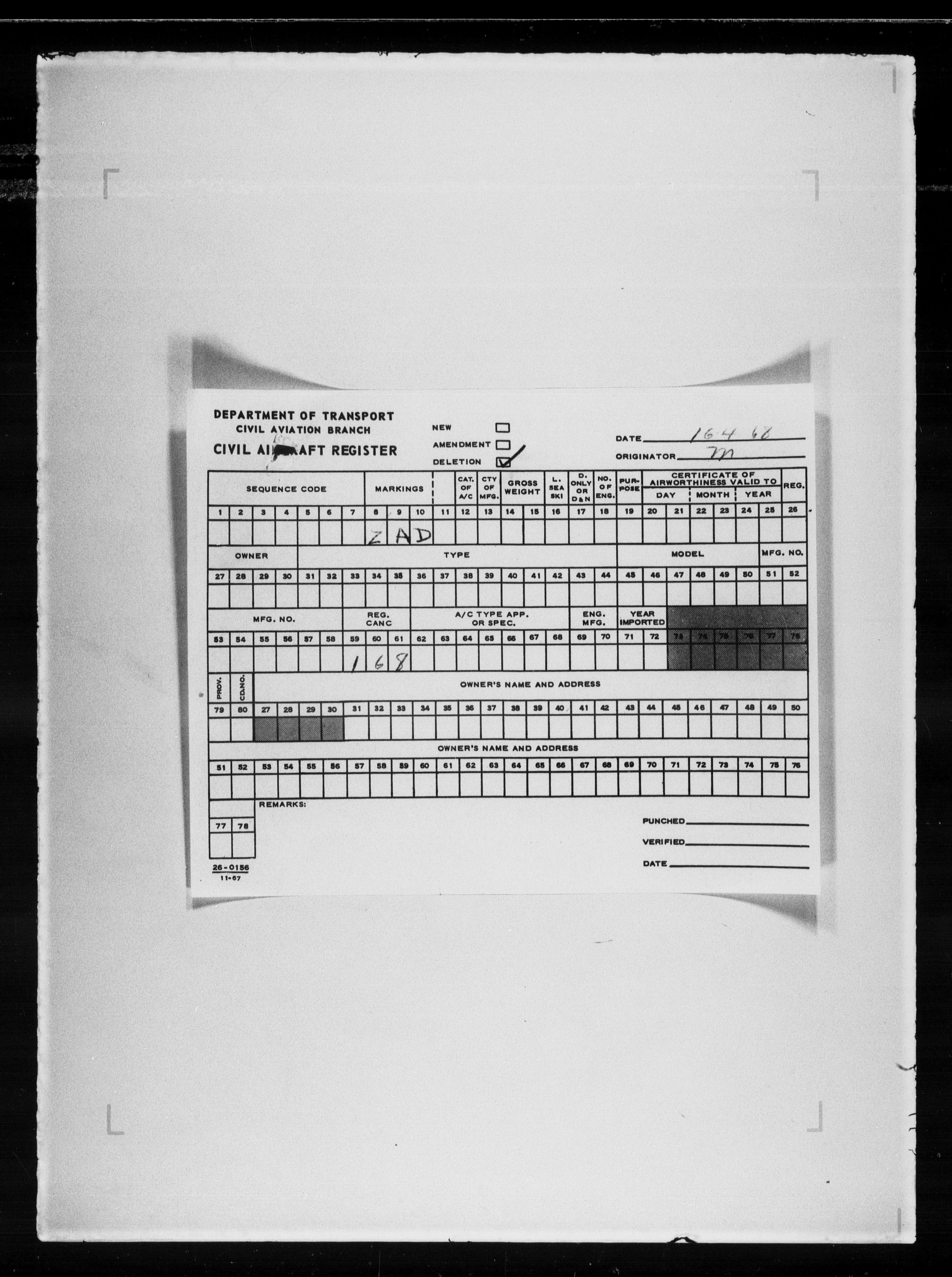 Department of Transport : Civil aircraft registration, inspection and operation files, block 5008, 1920-1986 - 7986