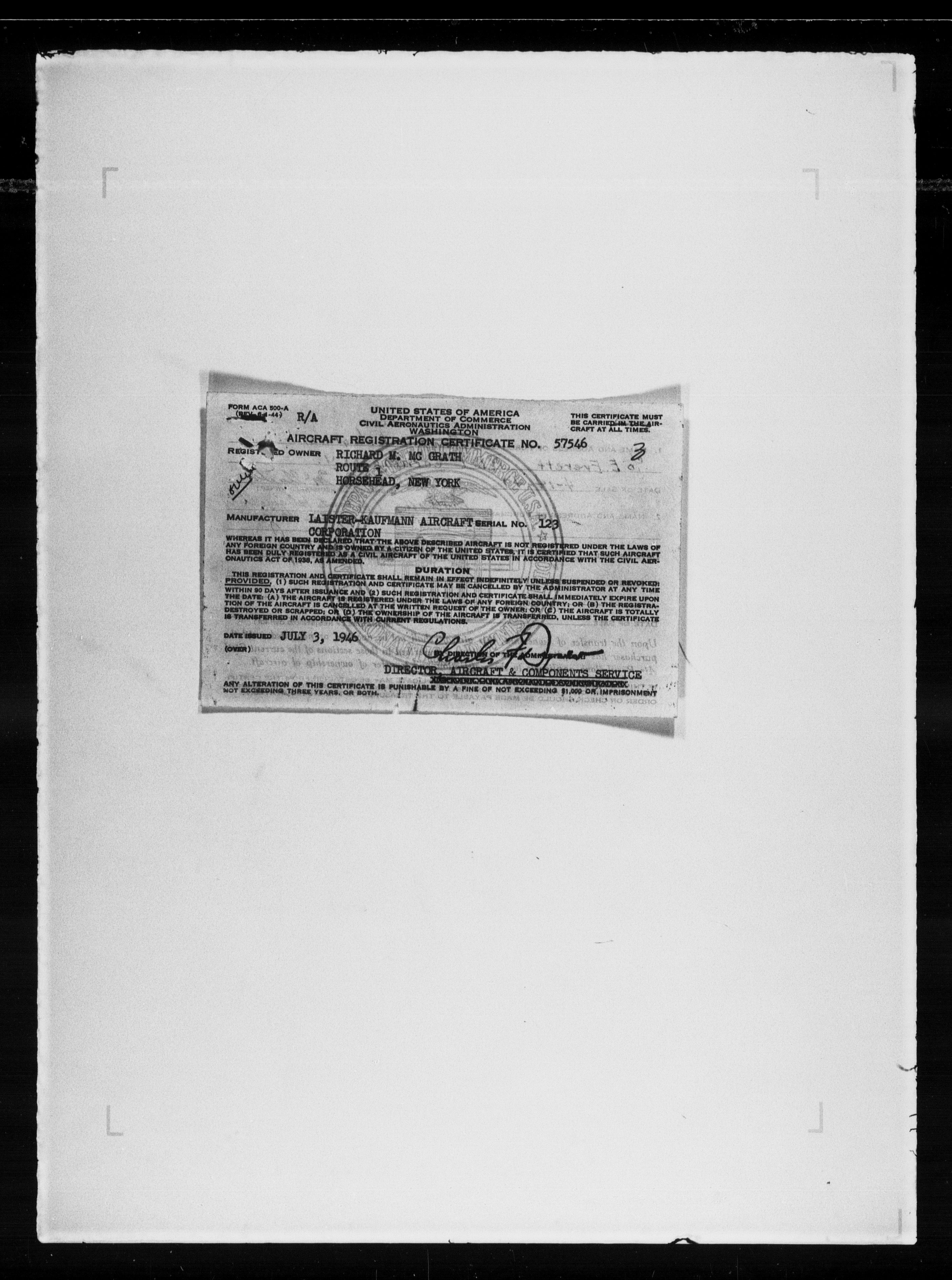 Department of Transport : Civil aircraft registration, inspection and operation files, block 5008, 1920-1986 - 7986