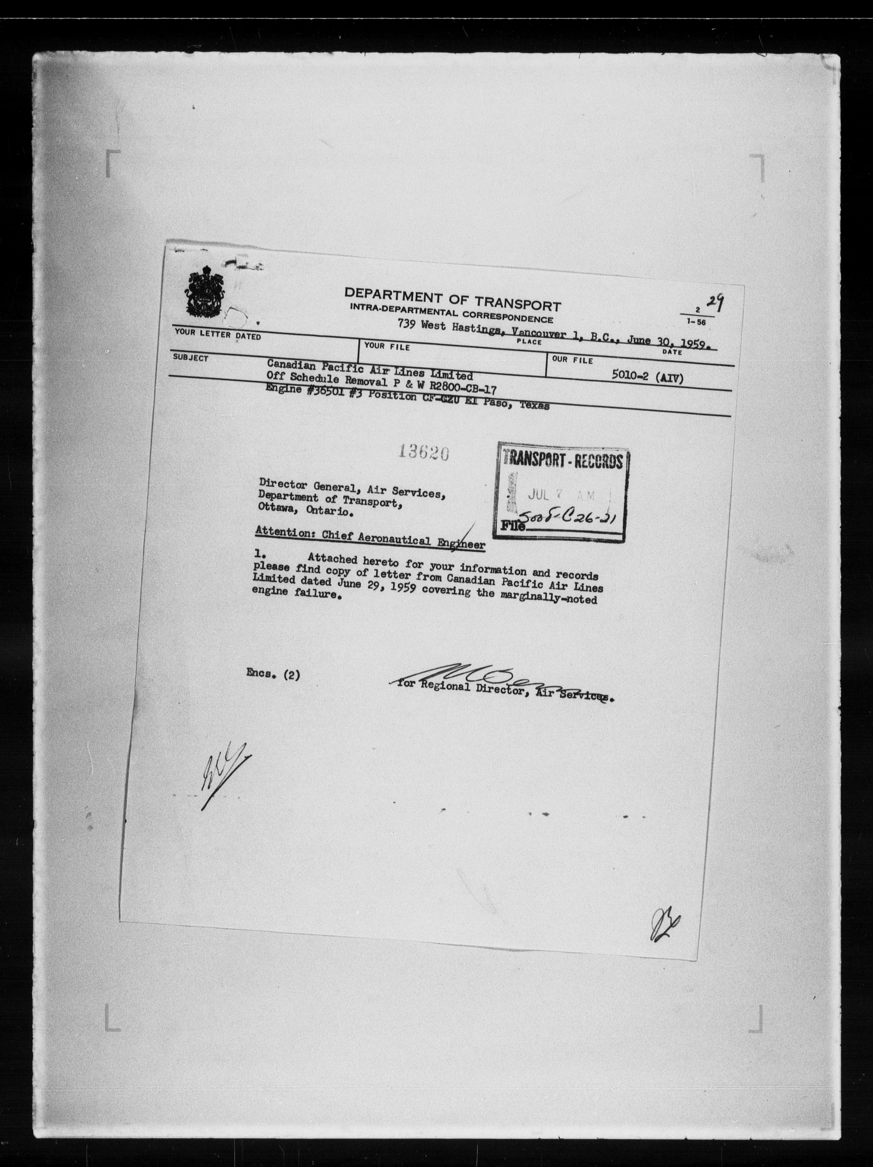 Department of Transport : Civil aircraft registration, inspection and operation files, block 5008, 1920-1986 - 7987