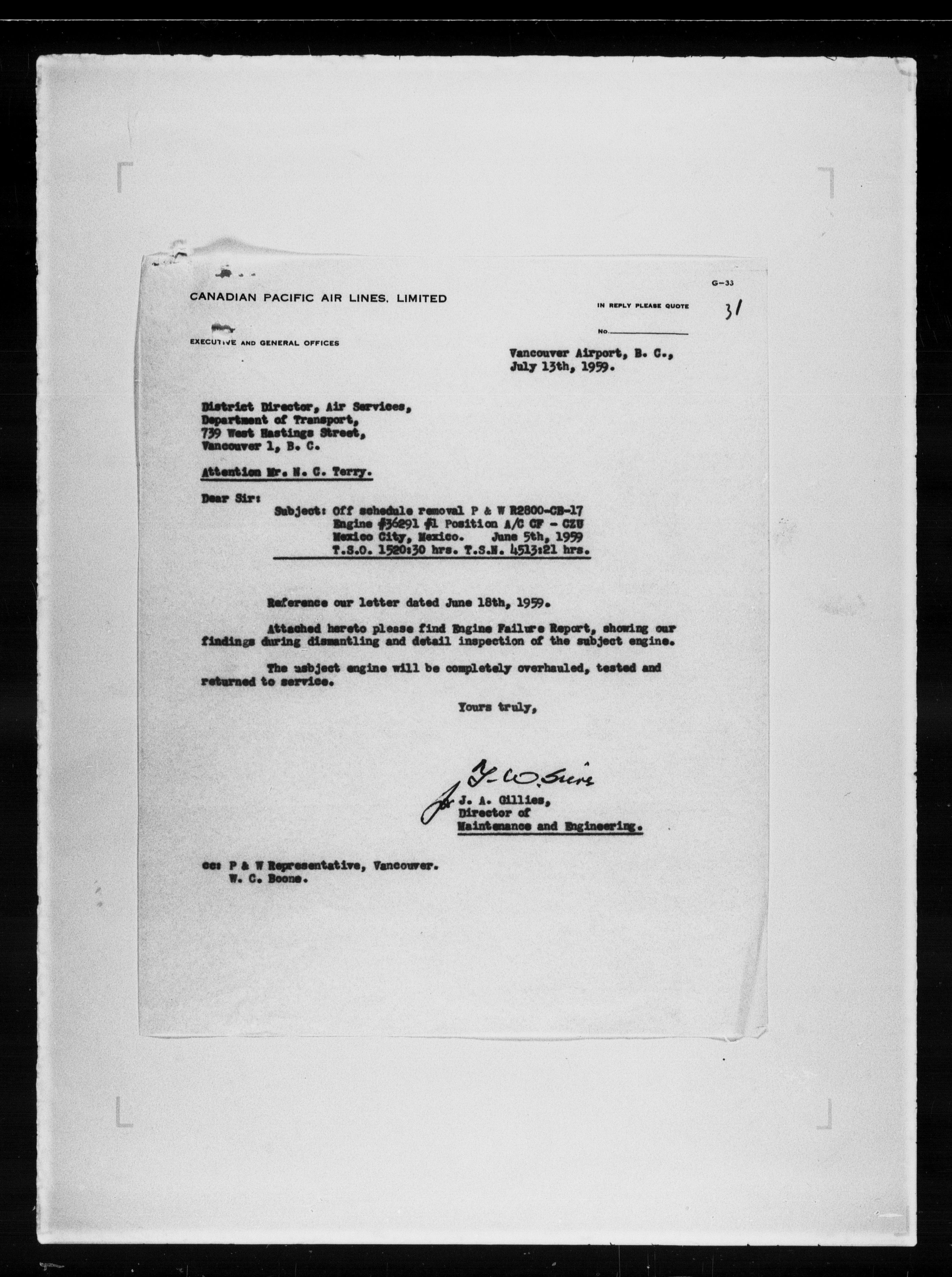 Department of Transport : Civil aircraft registration, inspection and operation files, 1920-1986 : T-7987