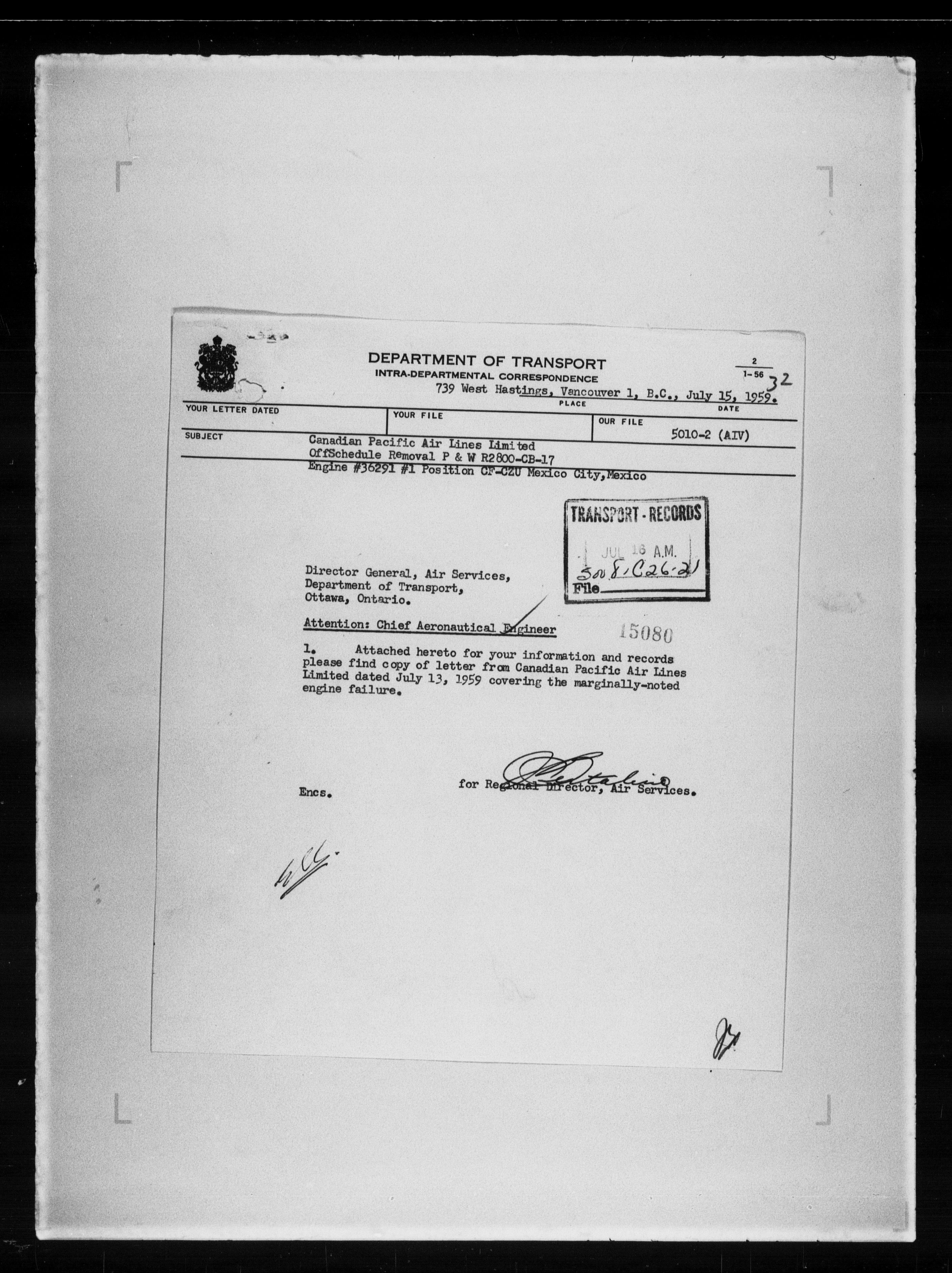 Department of Transport : Civil aircraft registration, inspection and operation files, block 5008, 1920-1986 - 7987
