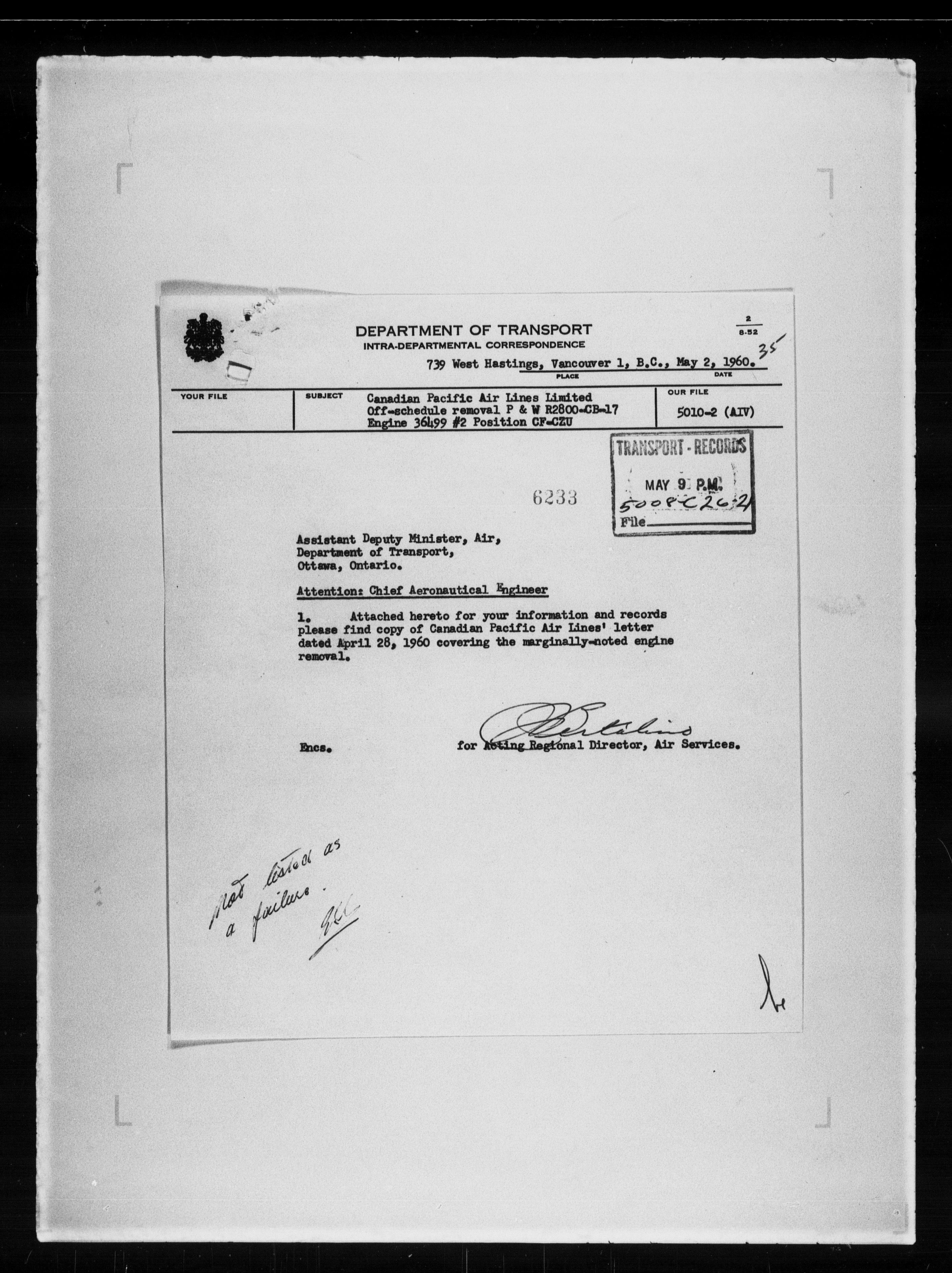Department of Transport : Civil aircraft registration, inspection and operation files, block 5008, 1920-1986 - 7987