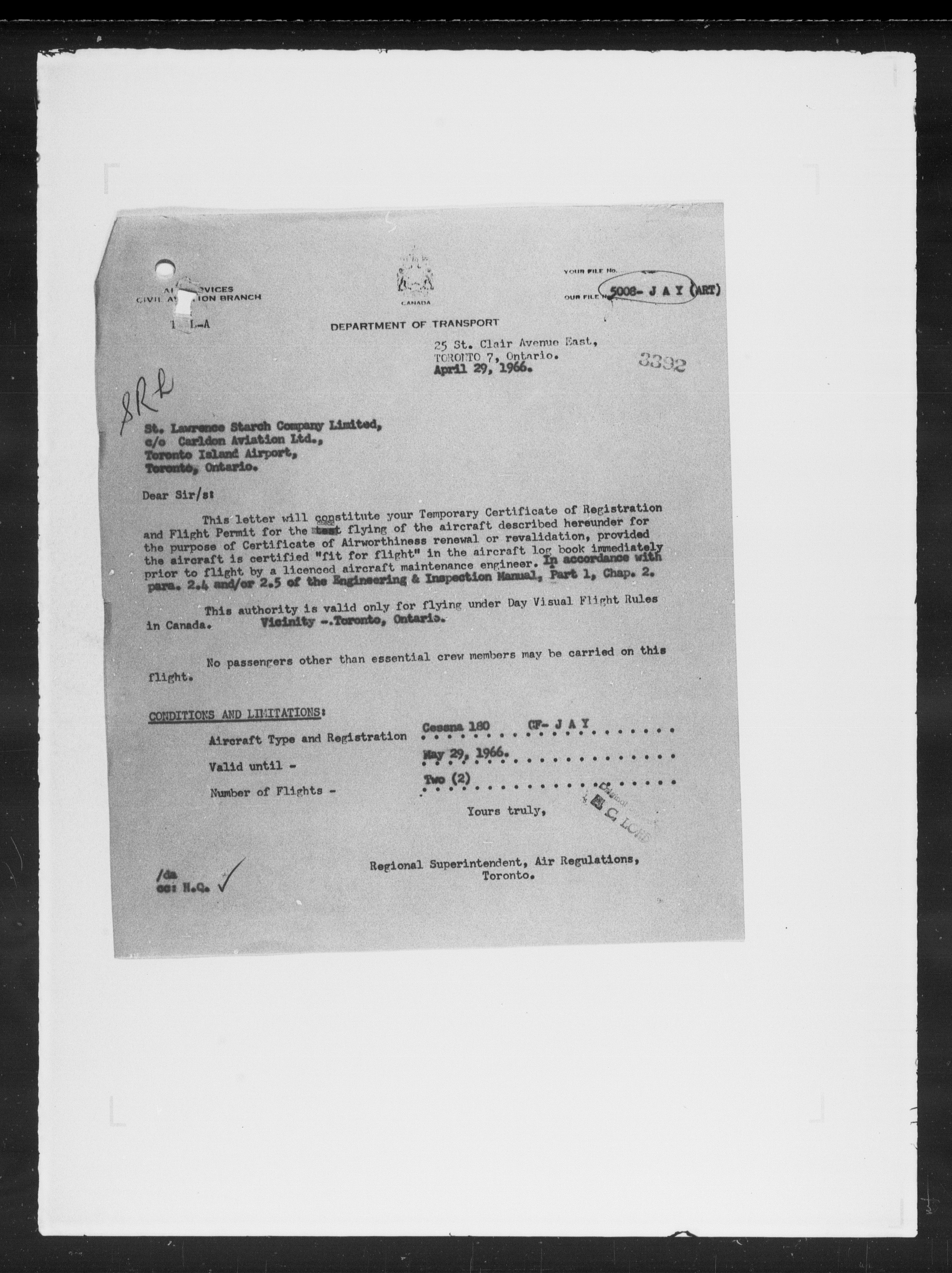 Department of Transport : Civil aircraft registration, inspection and operation files, block 5008, 1920-1986 - 7992
